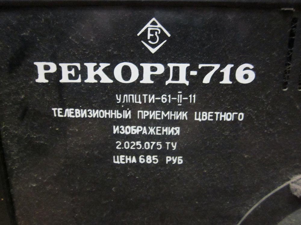 Телевизионный приёмник цветного изображения *Рекорд-716/Д* с начала 1978 года выпускал Александровский радиозавод. Телевизор **Рекорд-716/Д** с небольшими изменениями, практически повторяет предыдущую модель *РЕКОРД-714*. Это унифицированный, с добавлением в унификацию буквы *И* (УЛПЦТИ-61-II-11/10), наверное добавлены интегральные микросхемы, лампово-полупроводниковый телевизор, предназначенный для приёма ТВ программ в диапазонах МВ и ДМВ (индекс *Д*). Размер изображения - 482х362 мм. Чувствительность в диапазонах МВ - 50 мкВ, ДМВ - 110 мкВ. Полоса воспроизводимых звуковых частот 80...12500 Гц. Номинальная выходная мощность казвукового сопровождения - 2,5 Вт. Потребляемая мощность 250 Вт. Габариты аппарата 770х550х545 мм. Масса 60 кг. В оформлении имеётся дверка, закрывающая переднюю панель управления (защита от детей).