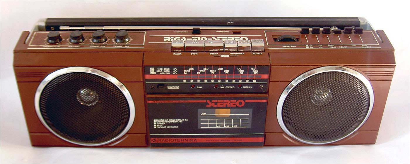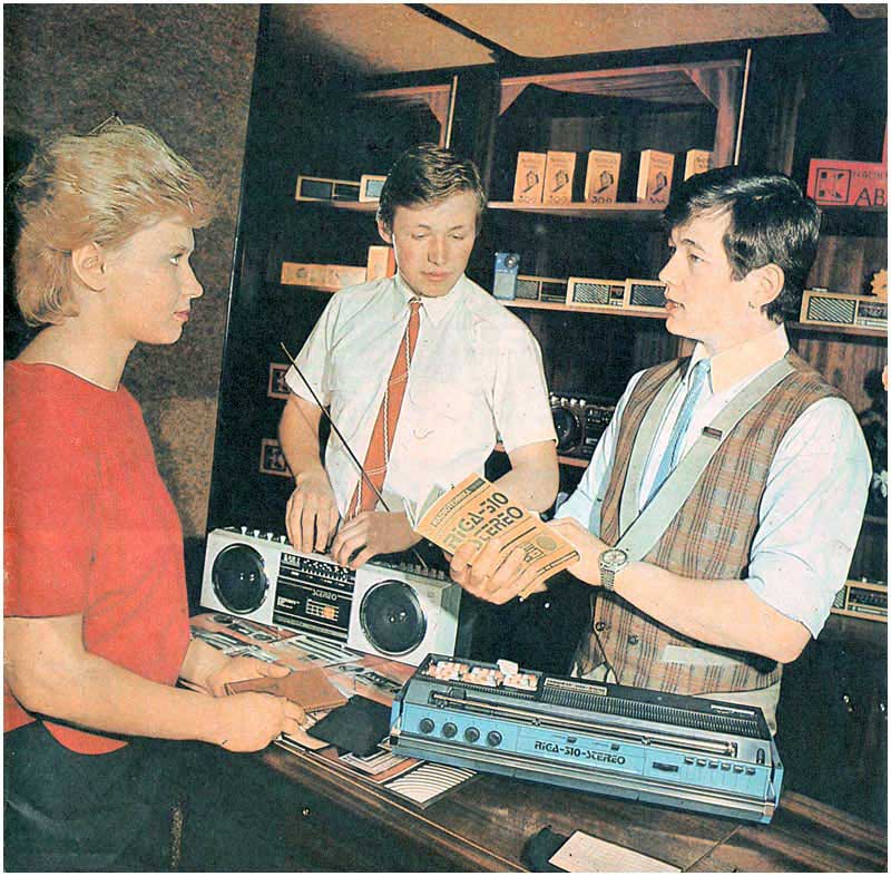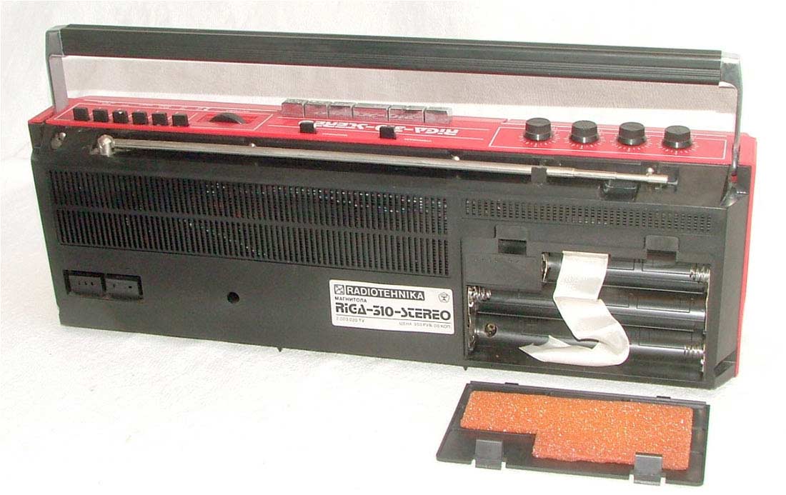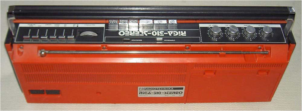 Портативная кассетная магнитола *Рига-310-стерео* с 1986 года выпускалась Рижским ПО *Радиотехника*. Она объединяет ДВ, СВ, УКВ-ЧМ радиоприёмник и кассетный магнитофон на базе ЛПМ производства ВНР. Это первая в CCCР модель третьей группы сложности, где имеется АРУЗ, электрическое расширение стереобазы, полный автостоп с отключением питания, режим ускоренного поиска по фрагментам записи; таймер позволяющий программировать выключение магнитолы через нужное время. Музыкальная мощность 2х5 Вт, полоса рабочих частот AM тракта: 120...5000 Гц, ЧМ 120...16000 Гц, записи 40...12500 Гц, коэффициент детонации ±0,2%. Габариты МЛ - 500х164х122 мм, вес 3,6 кг.