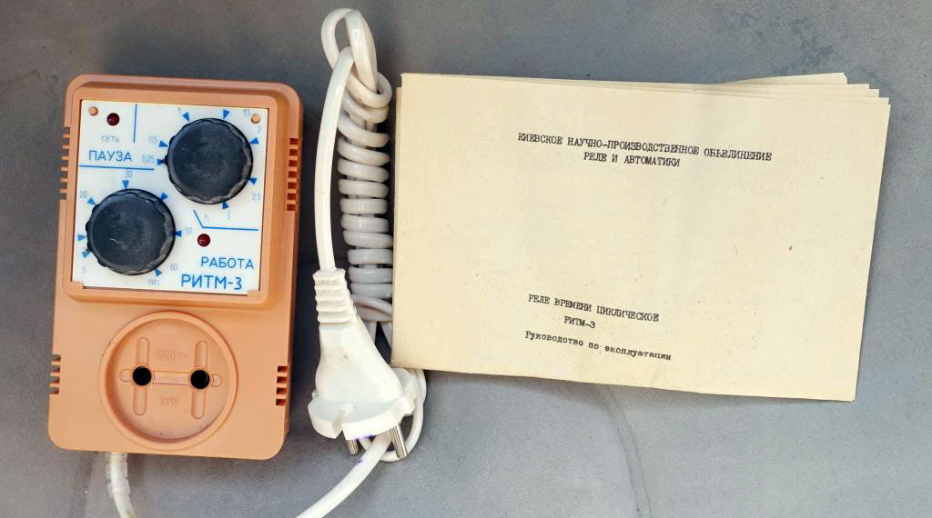 Реле времени циклическое *Ритм-3* выпускалось предположительно с 1992 года Киевским научно-производственным объединением реле и автоматики.