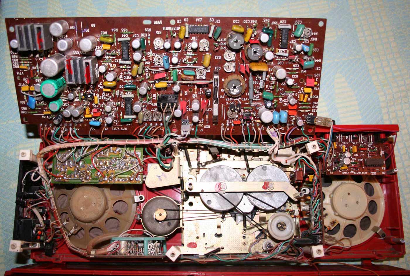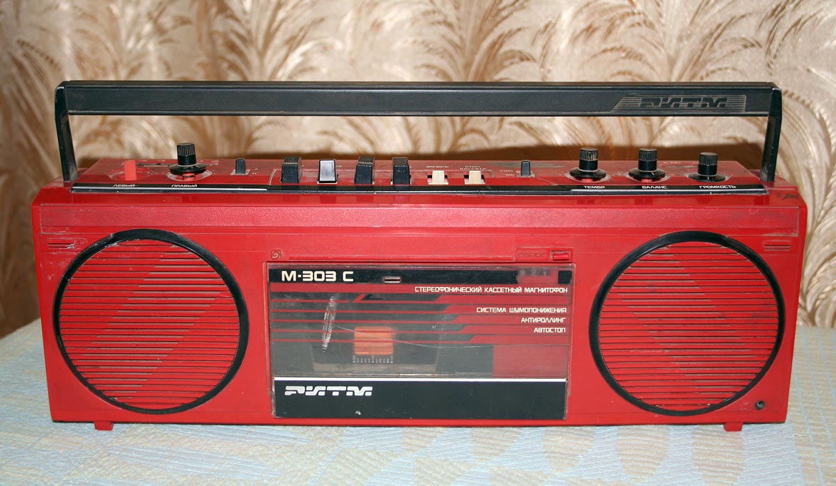 Стереофонический кассетный магнитофон *Ритм М-303С* с I-кв 1988 года выпускал Пермский электроприборный завод. Предназначен для записи моно или стереофонических фонограмм на магнитную ленту МЭК-1 в кассетах МК, их воспроизведение громкоговорителями и имеет следующие возможности: автоматический стоп при окончании ленты с отключением питания; возможность подключения стереофонических телефонов; отключаемую систему шумопонижения; световую индикацию уровня записи; разряда батарей; внешнего питания; регулировка тембра ВЧ, уровня записи, баланса; электретный микрофон; временный останов ленты; контроль расхода ленты. Рабочий диапазон частот на ЛВ 63...12500 Гц. Детонация 0,3%. Взвешенное отношение сигнал/шум -54 дБ. Номинальная выходная мощность 2х1, максимальная 2х2 Вт. Потребляемая мощность 12 Вт. Габариты магнитофона 410х135х95 мм. Масса без БП, батарей и кассеты - 2,5 кг. Сначала завод выпускал магнитофоны с транзисторами в УМ, более поздние на микросхемах К174УН7. Помимо этого, в них была введена АРУЗ и убраны регуляторы уровней записи. Система шумопонижения также была упразднена. Впрочем были и комбинированные варианты.