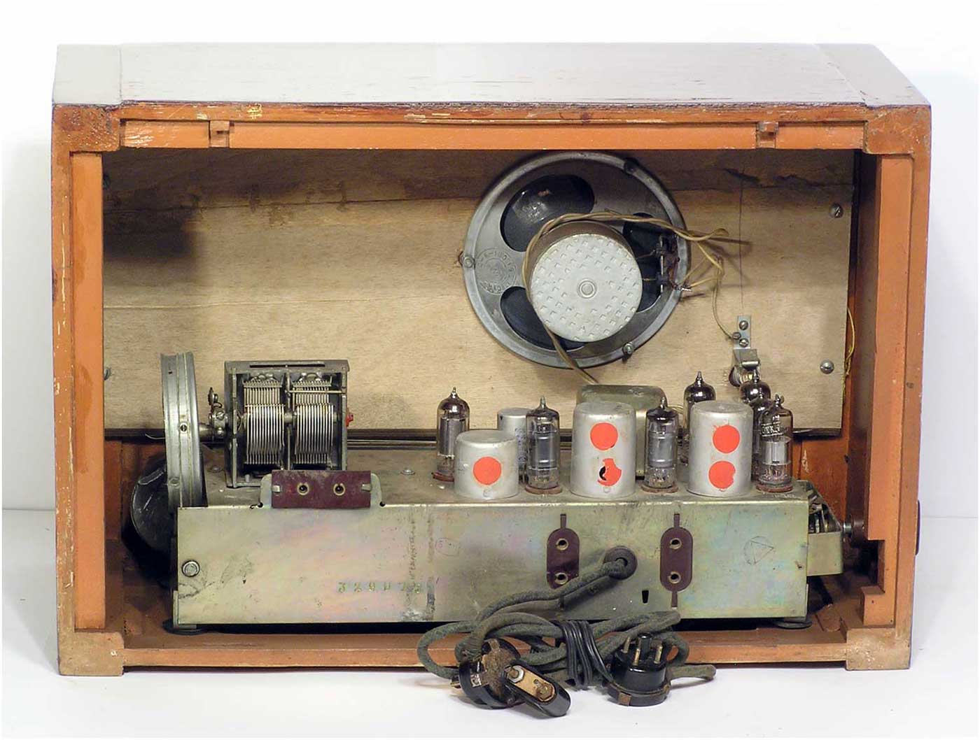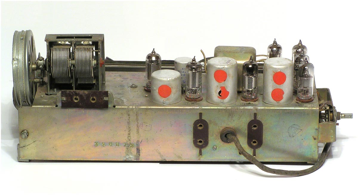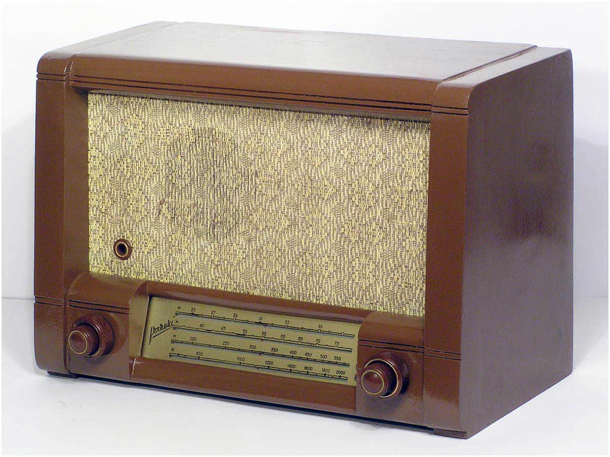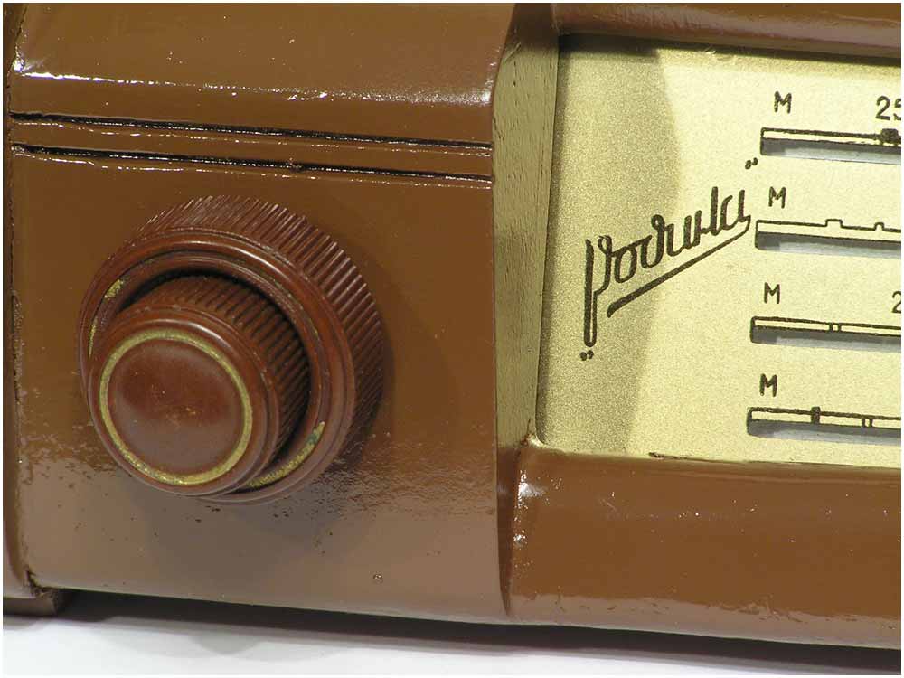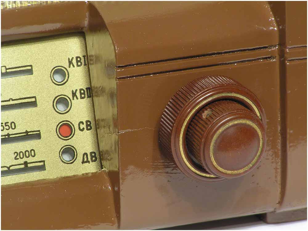 Радиоприёмник батарейный *Родина-52* с 1952 года выпускал Челябинский радиозавод и Воронежский завод *Электросигнал*. Приёмник разработан в 1951 году конструкторским бюро Воронежского завода **Электросигнал**. Приёмник заменил модель **Родина-47** и стал первым в СССР супергетеродинным приёмником 2-го класса на пальчиковых лампах. При высокой чувствительности и избирательности, он отличается экономичностью. Кроме того, в схеме имеется устройство, позволяющее уменьшать расход энергии, когда не требуется работа с большой громкостью. На передней панели, справа находится сдвоенная ручка: большая служит для переключения диапазонов, малая для настройки. Сдвоенная ручка слева выполняет несколько функций: большая - выключатель питания и регулятор тона, малая регулятор громкости. Регулятор тона имеет положения: **Выключено**, **Широкая** и **Узкая полоса**. В положении **Узкая полоса** срезаются высокие частоты. На левой боковой стенке находится переключатель рода работы на три положения: для работы в экономичном режиме **ММ** (Малая мощность), в нормальном режиме **БМ** (Большая мощность) и для работы от звукоснимателя **ЗС**. Сзади находятся гнёзда антенны и заземления, звукоснимателя и добавочного громкоговорителя. С помощью этого же разьёма приёмник может быть включен в трансляционную сеть. Для подключения батарей приёмник снабжен шнуром с колодками. Кроме того в комплекте имеется переходная колодка, которая позволяет использовать обычные батареи накала и анода. Радиоприёмники **Родина-52** начиная с 1954 года работали на батареях от приёмников **Искра-53**. Приёмник имеет 4 диапазона: ДВ 200...723 м, СВ 577...167 м, КВ1 76...36 м и КВ2 36...24,8 м.Чувствительность на ДВ, СВ 200 мкВ, КВ 300 мкВ. Избирательность по соседнему каналу 26 дБ. Избирательность по зеркальному каналу на ДВ 36 дБ, СВ 30 дБ, КВ 12 дБ. Диапазон воспроизводимых звуковых частот 100...4000 Гц. ПЧ 465 КГц. Индикатором включения служит неоновая лампа, расположенная слева над регулятором громкости. Расход тока по накалу 520 мА в обычном и 400 мА в экономичном режиме. Потребляемый ток в режиме **ММ** при выходной мощности 100 мВт - 8,5 мА, в режиме **БМ** при мощности 300 мВт - 12 мА. При работе звукоснимателя выключается накал ламп приёмной части, а выходной каскад работает в режиме **БМ**. В приёмнике установлен громкоговоритель 3ГД-3 (позднее 0,5ГД-5) с постоянным магнитом. Габариты приёмника 450х310х225 мм. Вес 12,5 кг. Радиоприёмник **Родина-52** выпускался до середины 1960 года, претерпев за это время несколько модернизаций схемы и внешнего вида.