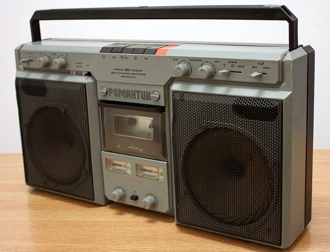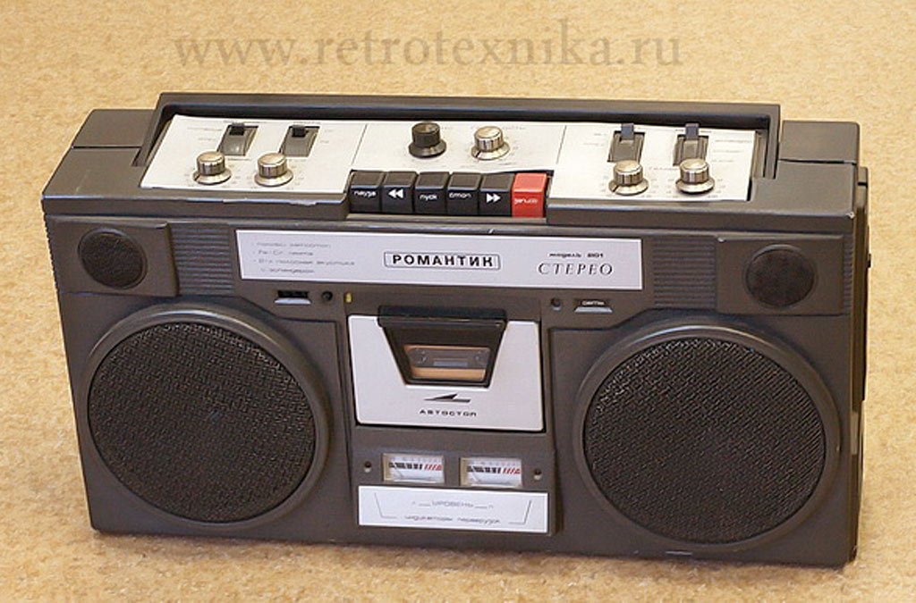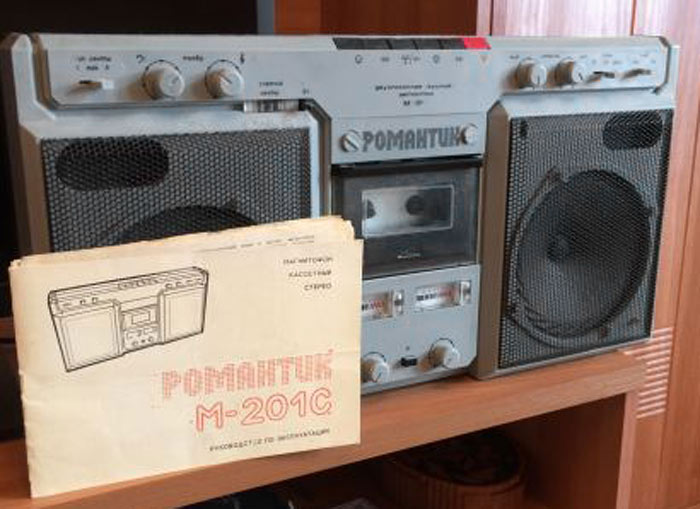 Стереофонический кассетный магнитофон *Романтик-307-стерео* с 1983 года выпускал Горьковский завод им. Петровского. Была выпущена опытная партия, а так как параметры магнитофона соответствовали аппарам второго класса, то началась подготовка к выпуску магнитофона *Романтик-201-стерео*. Оба магнитофона аналогичны и предназначены для записи фонограм с их последующим воспроизведением через собственные АС или внешнее УКУ. Питание универсальное: от сети переменного тока, восьми элементов А-373 или внешнего источника напряжением 12 В. В магнитофоне имеется: автоматический останов ЛПМ с возвратом клавиш в исходное положение при окончании ленты; слуховой контроль записываемого сигнала; возможность отключения громкоговорителей в АС и подключения стереотелефонов. В модели имеются: индикаторы уровня записи и воспроизведения; световые индикаторы включения в сеть; отключаемая СШП; счётчик расхода ленты; устройство расширения стереобазы. В магнитофоне установлено четыре громкоговорителя, два 3ГД-38 и два 2ГД-36. Основные параметры: магнитная лента А4205-3Б или А4212-3Б; коэффициент детонации ±0,25%; максимальная выходная мощность при питании от электросети 4 Вт, от батарей 2 Вт; рабочий диапазон частот на ЛВ на ленте: А4205-3Б - 40...12500 Гц, А4212-3Б - 40...14000 Гц. Коэффициент гармоник на ЛВ 4%. Относительный уровень шумов и помех с СШП -54 дБ, без СШП -51 дБ. Мощность, потребляемая от сети 12 Вт. Габариты аппарата - 505х265х125 мм. Масса - 6,5 кг. На последнем фото макет варианта магнитофона *Романтик-201-стерео*, подготовленного к выпуску с 1984 г.
