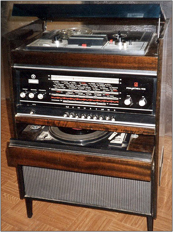 Магниторадиола *Романтика-106* с 1973 года выпускалась Харьковским ПСЗ им. Шевченко. Установка представляет собой модернизацию модели **Романтика-105**. В магниторадиоле применена транзисторная 4-х дорожечная катушечная магнитофонная панель 2-го класса **Романтика-201**, выполненная на базе унифицированного ЛПМ, что и является отличием от модели **Романтика-105** в которой используется ламповая магнитофонная панель 3 класса. Схема приёмника и конструкция блоков аналогичны базовой модели. На магнитофонной панели имеются гнёзда подключения приёмника, микрофона, внешнего ЭПУ, внешнего усилителя, гнездо линейного выхода. Уровень записи контролируют по стрелочному индикатору. Число дорожек записи - 4. Скорость движения ленты 9,53 и 19,05 см/сек. Время записи на катушке № 15 с лентой А4407-6Б на 4-х дорожках при скорости 9,53 см/сек - 4 часа. 19,05 см/сек - 2 часа. Габариты магниторадиолы 865х560х370 мм. Масса 33 кг.