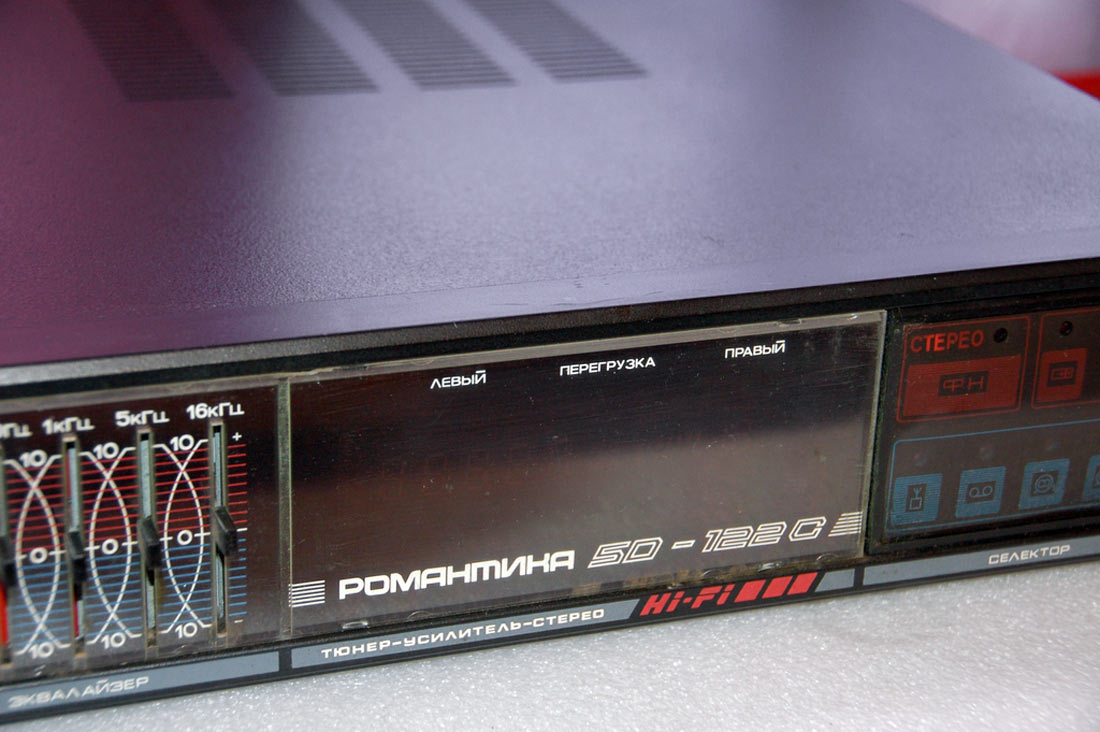 Тюнер-усилитель *Романтика 50РУ-122С* выпускался с 1991 года Харьковским ПСЗ имени Т.Г.Шевченко. Тюнер-усилитель с псевдосенсорным управлением 1-й группы сложности предназначен для приёма и усиления монофонических и стереофонических программ в диапазоне УКВ, высококачественного усиления стереофонических музыкальных фонограмм от различных источников с возможностью повышения качества фонограммы с помощью эквалайзера. Технические характеристики: Тюнер: Диапазон принимаемых частот 65,8...74,0 мГц. Чувствительность при соотношении сигнал/шум 36 дБ не хуже 3 мкВ. Избирательность по зеркальному каналу 50 дБ. Разделение стереоканалов на частоте 1000 Гц не менее 30 дБ. Диапазон воспроизводимых частот по электрическому напряжению 31,5...18000 Гц. Усилитель: Номинальная выходная мощность при нагрузке 8 Ом - 2х25 Вт. Диапазон эффективно воспроизводимых частот 20...20000 Гц. Коэффициент гармоник на частоте 1000 Гц не более 0,4 %. Максимальная выходная мощность 2х35 Вт.