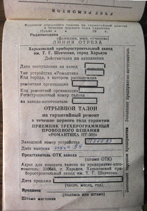 Приёмник трёхпрограммный *Романтика ПТ-301* выпускался предположительно с 1993 года Харьковским ПСЗ имени Шевченко. Другой информации пока нет.