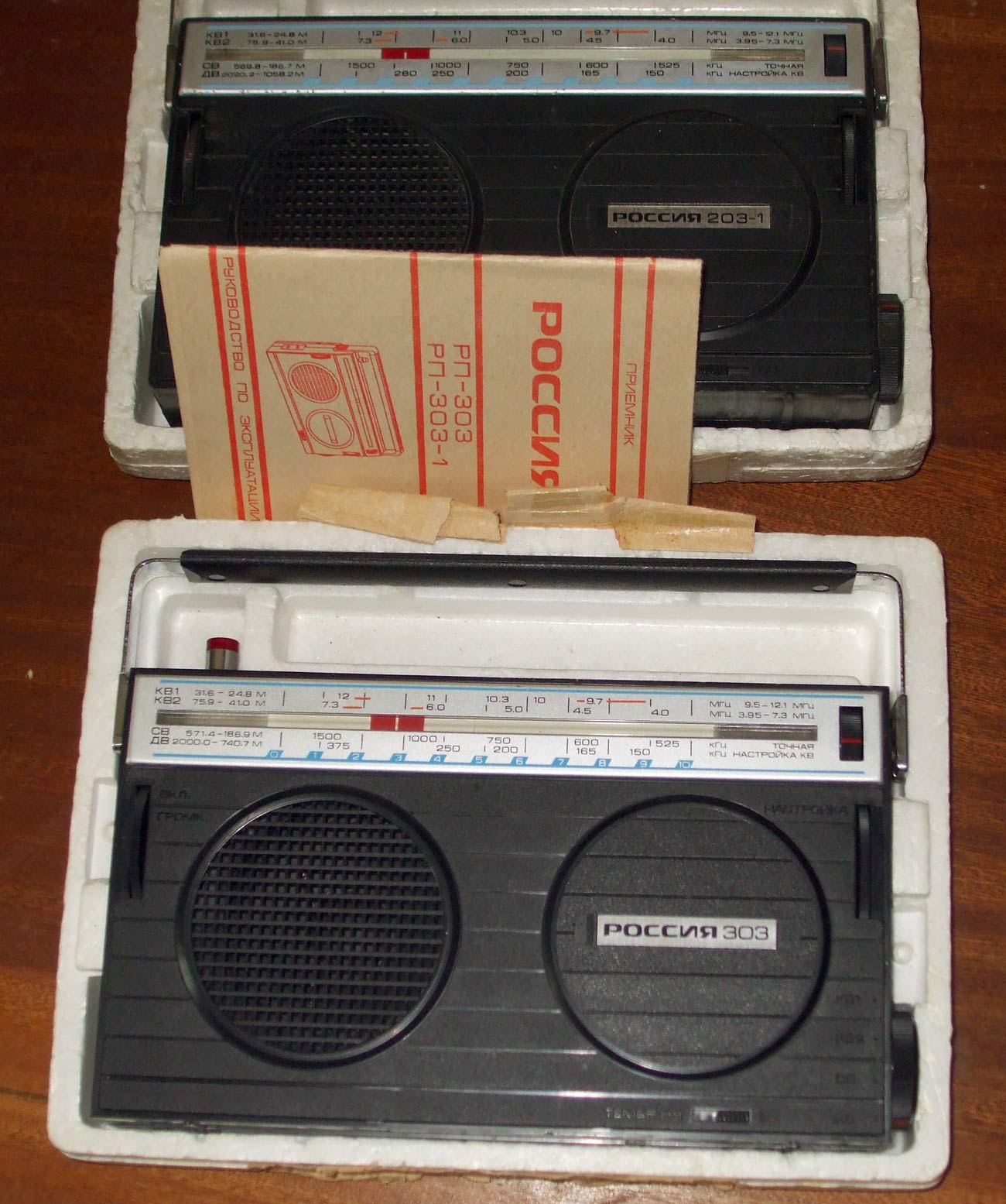 Портативный радиоприёмник *Россия-303-1* с 1982 года выпускало Челябинское ПО Полёт. Радиоприёмник создан на базе модели **Россия-303**, но в отличии от неё имеет гнездо для внешнего блока питания, который мог идти в комплекте. Соответственно изменена схема и конструкция модели. Радиоприёмник предназначен для приёма в ДВ и СВ диапазонах на магнитную антенну и в двух поддиапазонах KB на телескопическую антенну. Источник питания 4 элемента 316. Потребляемый ток, при отсутствии сигнала 10 мА. Работоспособность сохраняется при снижении напряжения питания до 3,5 В. Длительность работы при средней громкости от свежих батарей 50 часов. В приёмнике имеется регулятор точной настройки в КВ поддиапазонах, гнёзда для наружной антенны и миниатюрного телефона. Диапазоны: ДВ 150...408 кГц, СВ 525...1605 кГц, КВ1 9,5...12,1 МГц, КВ2 3,95...7,3 МГц. ПЧ 465 кГц. Чувствительность в диапазонах ДВ - 1,5 мВ/м, СВ - 0,7 мВ/м, в обоих KB поддиапазонах 100 мкВ. Селективность 46 дБ. Номинальная выходная мощность около 100 мВт, максимальная 150 мВт. Полоса воспроизводимых частот звука - 300...3550 Гц. Среднее звуковое давление 0,25 Па. Габариты приёмника 215х125х47 мм. Масса 1 кг. С 1987 года радиоприёмник выпускался под наименованием *Россия РП-303-1*.