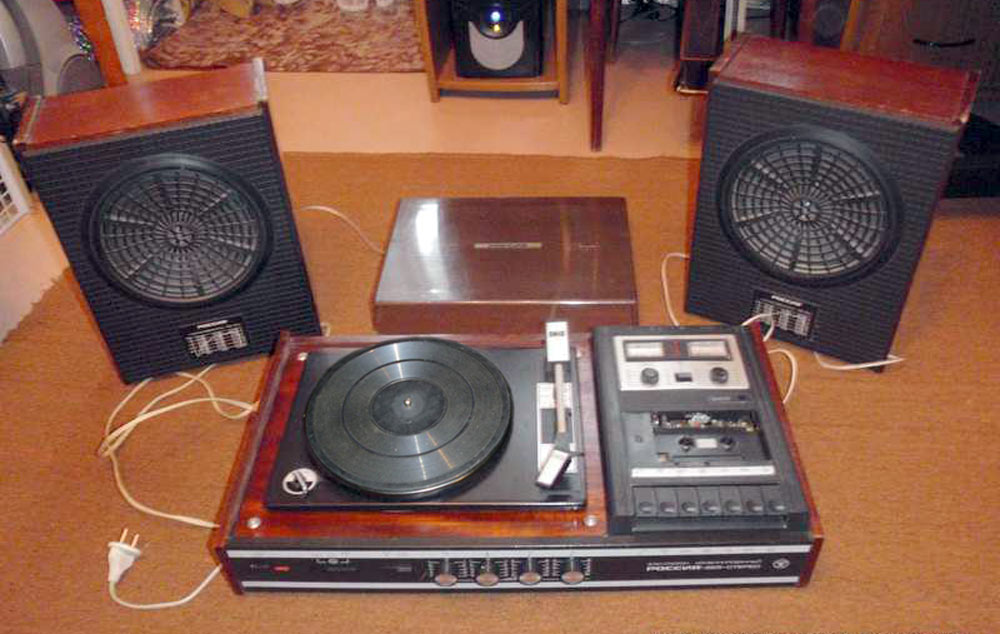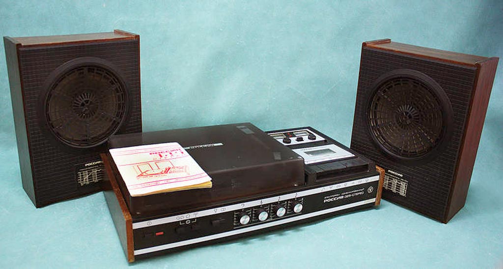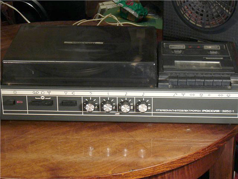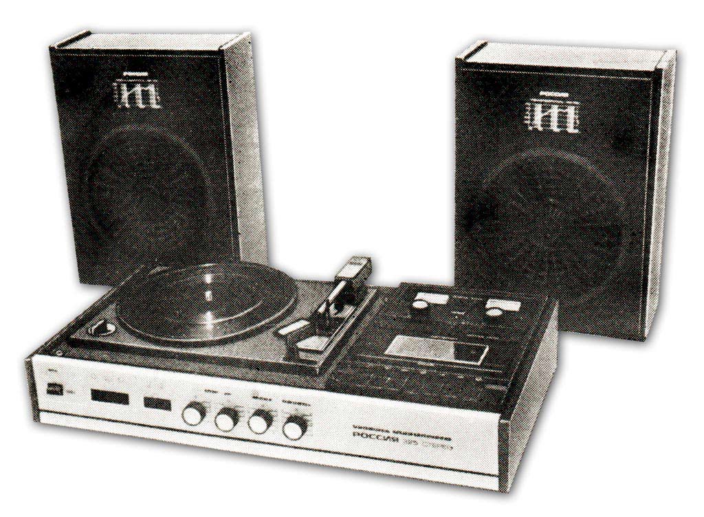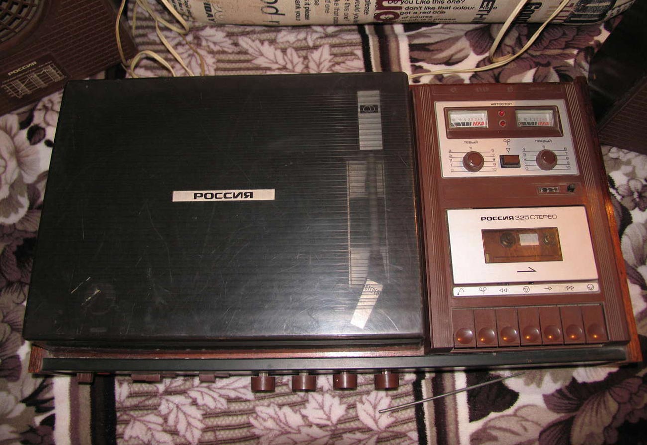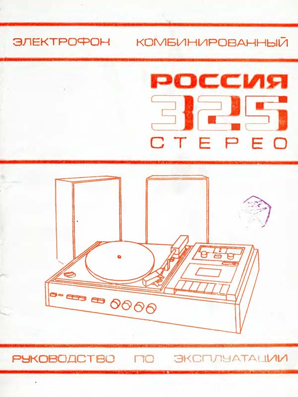 Электрофон комбинированный *Россия-325-стерео* с I-кв 1985 года выпускало Челябинское ПО *Полёт. Устройство обеспечивает воспроизведение моно и стереофонических грампластинок, а также запись моно и стереофонических фонограмм с последующим их воспроизведением через АС и стереотелефоны. Аппарат состоит из III-ЭПУ-74С, магнитофонной кассетной панели и двухканального усилителя, объединённых в общем корпусе, а также двух выносных АС. Модель имеет: раздельные регуляторы громкости, стереобаланса, тембров ВЧ и НЧ, микролифт и автостоп в ЭПУ, автоматический останов при окончании ленты, клавишу временной остановки ленты, счётчик ленты, стрелочные индикаторы уровня записи, световой индикатор режима записи, регуляторы уровня записи и громкости на стереотелефоны. Есть возможность подключения микрофона, стереотелефонов и источников звуковых программ на запись. Частота вращения диска 33; 45; 78 об/мин. Диапазон воспроизводимых частот: при воспроизведении грамзаписи 40...12500 Гц, магнитной записи 80...12500 Гц. Тип ленты А4205-3. Коэффициент детонации: электрофона 0,25%, МП 0,3%. Относительный уровень шумов и помех в канале записи-воспроизведения -48 дБ. Уровень фона -53 дБ. Максимальная выходная мощность 2х5 Вт. Потребляемая от сети мощность 40 Вт. Габариты модели 590х325х165 мм. Вес 19 кг. Цена 180 рублей. Электрофон и приставка с начала выпуска были отдельными блоками и приставка подключалась к электрофону кабелем (изображение первой модели есть в справочнике МРБ-1164), затем после модернизации в 1986 году оба устройства были конструктивно объединены в общем корпусе. АС были без наименования, с громкоговорителями типа 8ГД-Ш-1 (или типа 4ГД-15) и радиотканью были постепенно заменены на фирменные с громкоговорителями 4ГД-35. Устройство стало именоваться как *Россия-325С-1*, но ещё долгое время использовалось и его прежнее наименование *Россия-325-стерео*.