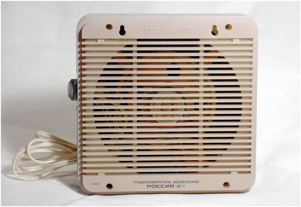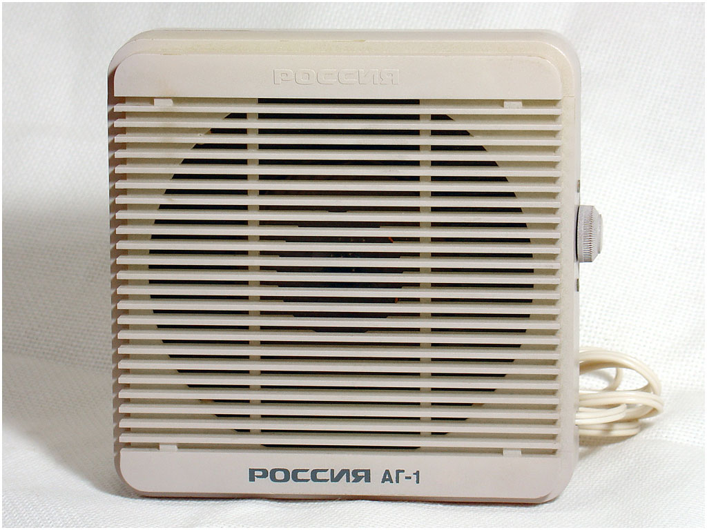 Абонентский громкоговоритель "Россия АГ-1" с 2000 года выпускал ФГУП Челябинский радиозавод Полет. Громкоговоритель абонентский "Россия АГ-1" воспроизводит программу НЧ канала сети проводного радиовещания. Номинальное напряжение радиосети 30 В, габариты 180х170х50 мм, диапазон воспроизводимых частот 160...10000 Гц, номинальная подводимая мощность 0,2 Вт, масса 0,3 кг. АГ имеет современный стильный дизайн, круглая ручка регулятора громкости расположена на боковой панели АГ. Соединительный шнур длиной 1 метр с вилкой служит для подключения к радиосети.