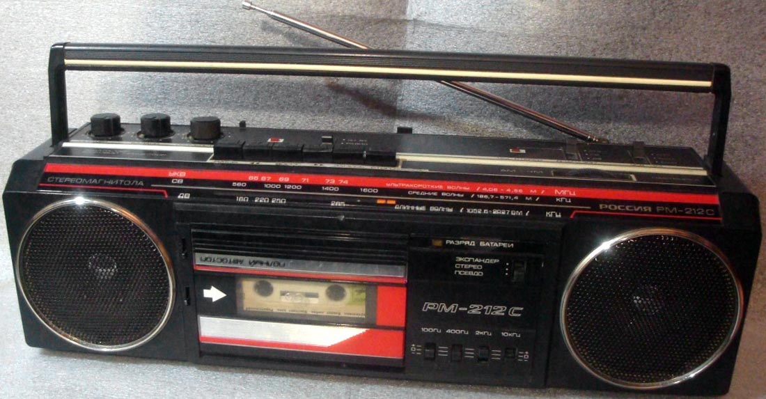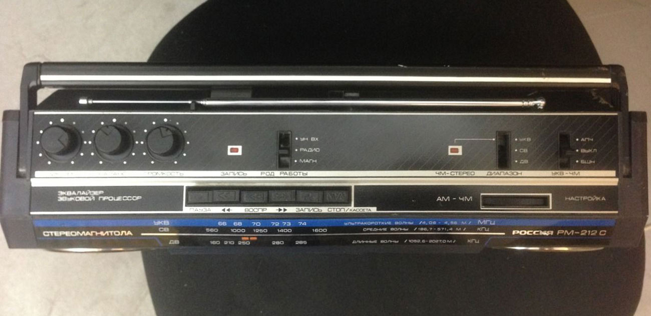 Стереофоническая кассетная магнитола *Россия РМ-212С* с 1987 года выпускалась ОАО Челябинский радиозавод *Полет*. Предназначена для приёма станций в диапазонах длинных, средних и ультракоротких волн и для записи и воспроизведения фонограмм с применением магнитных лент МЭК-1 и МЭК-2, в кассетах МК-60 или МК-90. Магнитола питается от 8-ми элементов А-343 или внешнего источника напряжением 12 В или от сети переменного тока напряжением 220 В через выносной блок питания. Технические характеристики магнитолы: Чуствительность в диапазонах: ДВ 2, СВ 1,2, KB 0,3 и УКВ 0,05 мВ/м. Скорость магнитной ленты 4,76 см/с. Коэффициент детонации ± 0,3%. Номинальная выходная мощность 2х1,5, максимальная 2х3 Вт. Диапазон воспроизводимых частот на ЛВ не уже 70...14000 Гц. Масса магнитолы без батарей 3 кг. С 1988 года выпускалась магнитола *Россия РМ-212-1С* во всём аналогичная модели *Россия РМ-212С*.