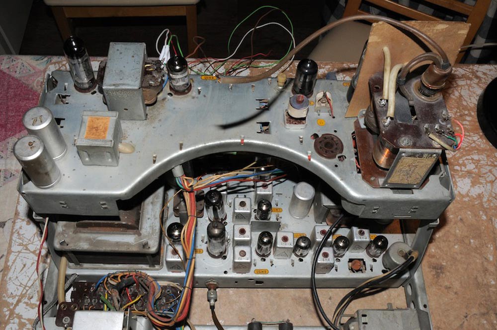 Телевизионный приёмник чёрно-белого изображения *Рубин-201* с 1958 года выпускал Московский телевизионный завод. На базе модели **Рубин-102** была создана консольная модель **Рубин-202** с оформлением как у телевизора **Рубин-201**. Однако в процессе производства с целью расширения ассортимента стала выпускаться подобная модель в другом внешнем оформлении и она также имела наименование **Рубин-202**. Для избежания путаницы первая модель переименована в **Рубин-201**. Цифра 2 теперь обозначала класс телевизора. Базовый телевизор **Рубин-102** также имел второй класс, но цифры 102 зачастую вносили неразбериху в классификацию. Оба эти телевизора имеют консольное оформление, при этом отпадает необходимость в приобретении столика. Оба телевизора отличаются от базовой модели помимо внешнего вида улучшенной акустической системой. В обоих моделях применено по 5 громкоговорителей, два 2ГД-3, два 1ГД-9 и один ВГД-1 причём 2ГД-3 и ВГД-1 находятся в нижнем отсеке а 1ГД-9 за панелью управления, посередине. Такая АС обеспечивает мощное и высокое качество звучания, полоса звуковых частот 50...15000 Гц, поэтому эти телевизоры могут быть использованы при обслуживании большой аудитории. Этому способствует и управление телевизорами на расстоянии до 7 м с помощью проводного пульта ДУ. Телевизоры отличаются между собой только по внешнему виду, в остальном, кроме веса они аналогичны базовой модели. Цена телевизоров 456 рублей 77 копеек, после реформы 1961 года. Инженер разработчик телевизоров **Рубин-201** и **Рубин-202** - Хахарев Вениамин Михайлович. Выпуск телевизора **Рубин-201** был начат в октябре 1958 года а закончен в декабре 1959 года. За этот период выпущено 5100 экземпляров, включая 310 экземпляров с первичным наименованием **Рубин-202**. Выпуск модели **Рубин-202** начат в ноябре 1958 года, а закончен в декабре 1959 года. Моделей **Рубин-202** было выпущено 7970 штук. С 1960 года завод вновь продолжил выпуск телевизоров **Рубин-202**, но в очень небольших количествах в основном для продажи в социальные учреждения, такие как дома культуры, сельские и городские клубы, библиотеки, детские дома, дома для престарелых и инвалидов и др. Отмечу, что телевизор **Рубин-202** после 1960 года имел вдвое более высокую чувствительность, 50 мкВ, вместо 100 мкВ как в базовом телевизоре **Рубин-102** или в телевизоре **Рубин-201**.