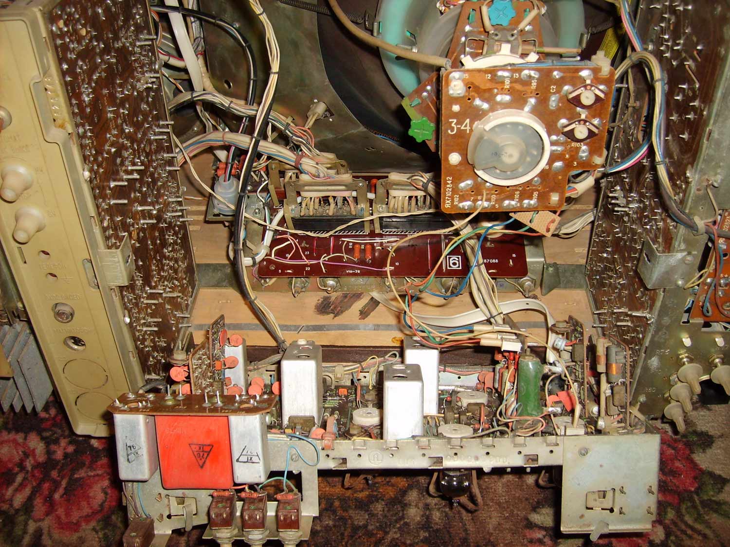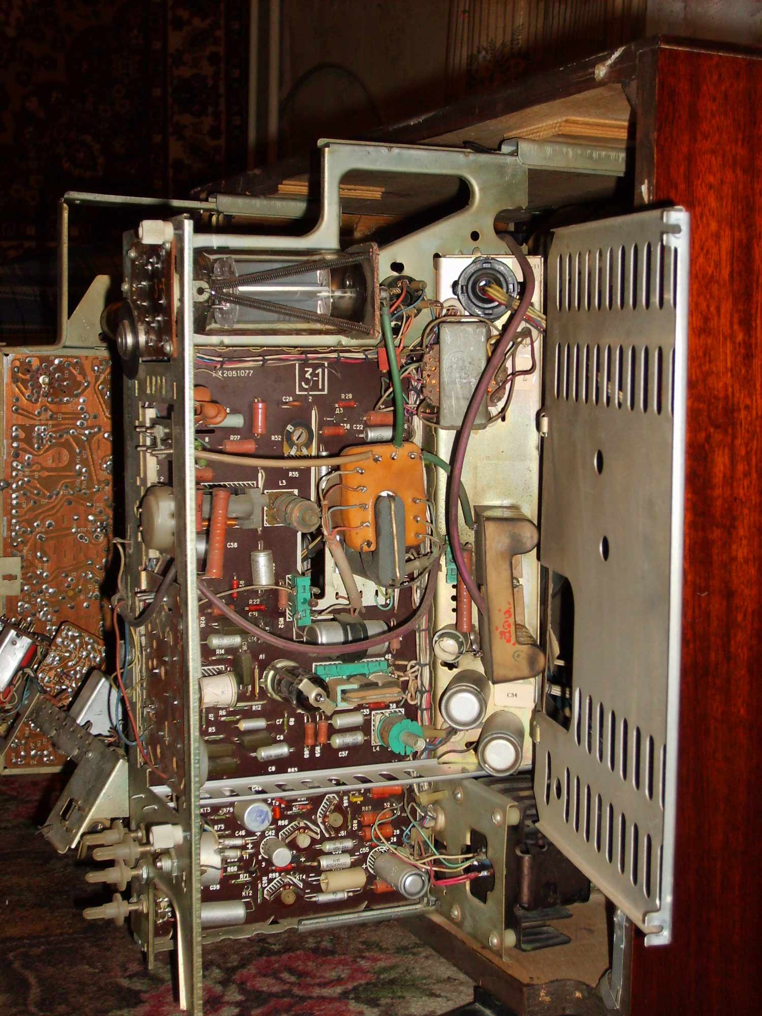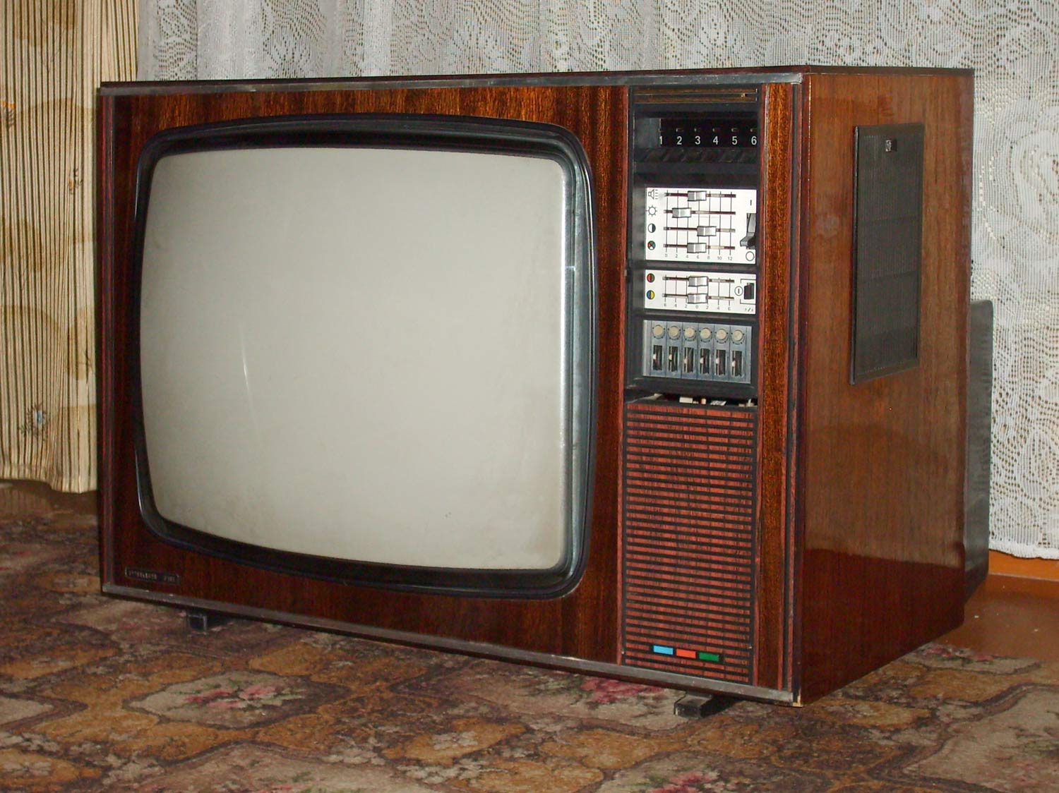 Цветной телевизионный приёмник *Рубин-718* с 1977 года выпускало Московское ПО *Рубин*. Цветной унифицированный лампово-полупроводниковый телевизионный приёмник второго класса **Рубин-718** представляет собой модернизацию телевизора **Рубин-712** и отличается сенсорным переключением программ и применением кинескопа 61ЛКЗЦ, вместо 59ЛКЗЦ. Размер изображения 362x480 мм. Разрешающая способность 450 линий. Количество принимаемых каналов в диапазоне MB - 12, ДМВ - 39. Потребляемая мощность 250 Вт. Чувствительность модели в диапазоне MB - 80 мкВ, ДМВ - 300 мкВ. Выходная мощность канала звука 2,3 Вт. Масса телевизора 65 кг.