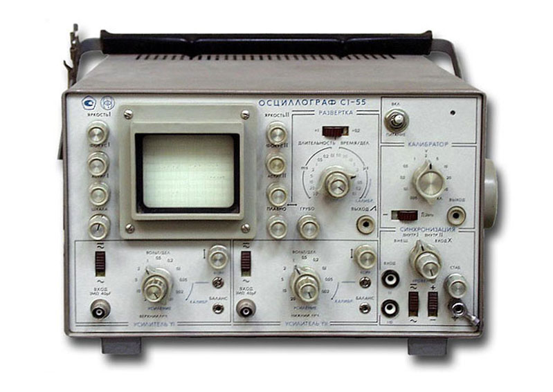 Осциллограф *С1-55* выпускали с I-кв 1974 года. Отечественной радиопромышленностью выпускался малогабаритный, полупроводниковый, двухлучевой осциллограф **С1-55** предназначенный для исследования форм 2 электрических процессов при настройке РТА путём измерения их амплитудных значений.