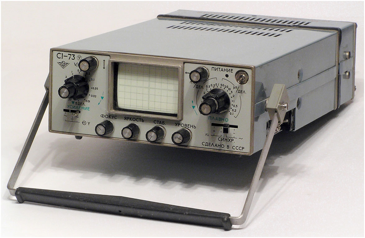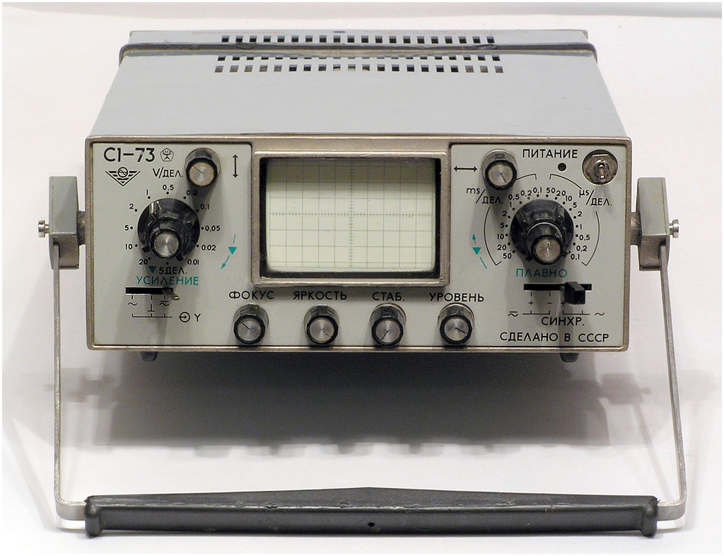 Малогабаритный универсальный осциллограф *С1-73* с 1977 года выпускало Львовское ПО имени Ленина. Малогабаритный универсальный осциллограф **С1-73** предназначен для исследования форм электрических сигналов в диапазоне частот от 0 до 5 Мгц путём визуального наблюдения и измерения их амплитуд в диапазоне от 0,02 до 120 вольт, а с делителем и до 350 В и временных интервалов до 0,5 сек.