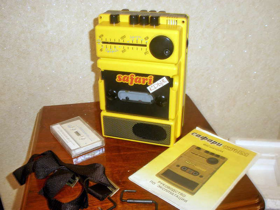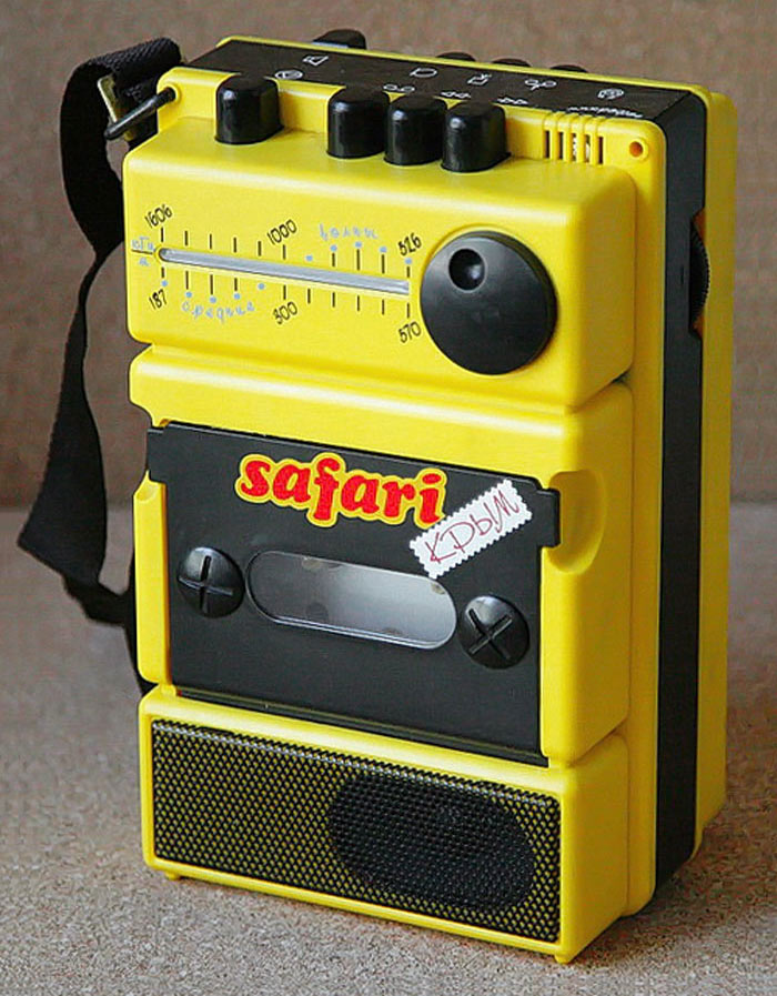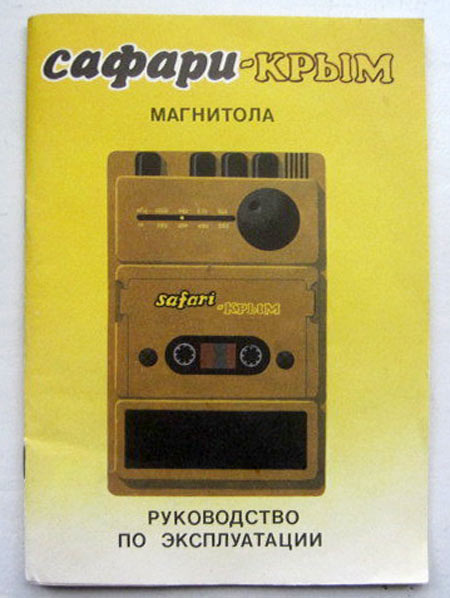 Магнитола-игрушка *Сафари-Крым* с начала 1991 года выпускал Симферопольский завод *Фиолент*. Магнитола предназначена для записи и воспроизведения фонограм с микрофона, встроенного приёмника или внешнего источника сигнала. Приёмник работает в диапазоне СВ. Чувствительность радиоприёмника с магнитой антенны 5 мВ/м. Селективность 5 дБ. Воспроизведение кассет со стереозаписью на головные телефоны стереофоническое. Со своего приёмника и микрофона (не везде он есть) запись монофоническая. Номинальная выходная мощность 150 мВт. Диапазон воспроизводимых звуковых частот при радиоприёме на выходе для телефонов - 100...5000 Гц, при воспроизведении магнитной записи - 80...10000 Гц, при работе встроенной АС диапазон воспроизводимых частот - 250...5000 Гц.