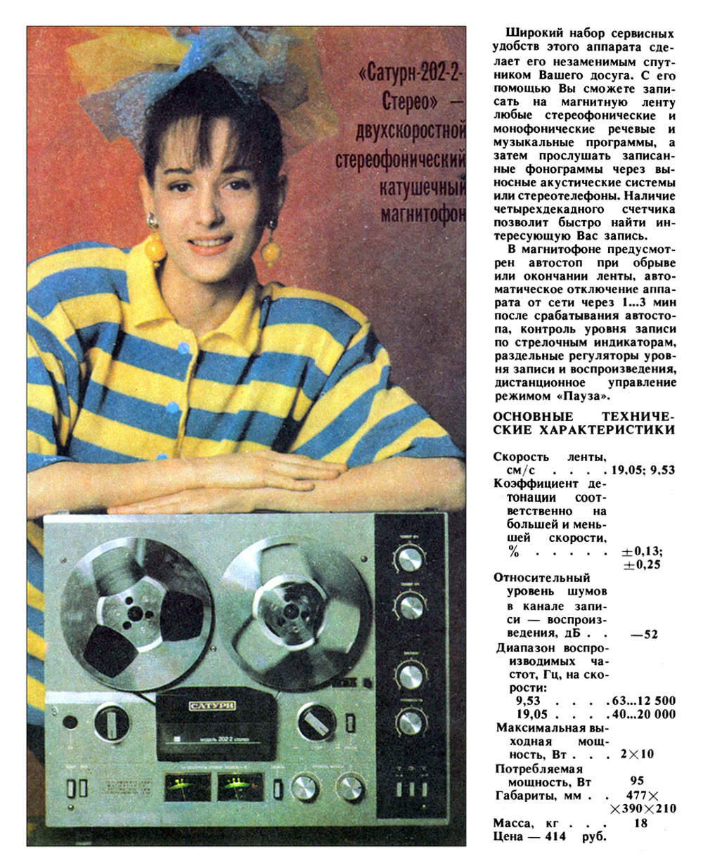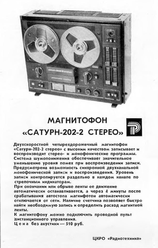Стереофонический магнитофон *Сатурн-202-2С* с 1985 года выпускал Омский электротехнический завод имени Карла Маркса. Магнитофон сначала именовался *Сатурн-202-2С*, а с 1986 года **Сатурн-202С-2**, с 1987 года **Сатурн МК-202С-2**. Предназначен для записи и воспроизведения моно и стерео фонограмм. 4-х декадный счётчик ленты позволит найти фонограмму. В модели есть автостоп при обрыве и окончании ленты, автоматическое отключение сети через 1...3 минуты после включения автостопа, контроль уровня записи по стрелочным индикаторам, раздельные ручки записи и воспроизведения, дистанционное управление режимом **Пауза**. ТХ: Скорости ЛПМ: 19,05 см/сек и 9,53 см/сек. Коэффициент детонации ±0,13% и ±0,25%. Относительный уровень шумов в канале записи и воспроизведения -51 дБ. Диапазон частот на скорости: 9,53 см/сек 63...12500 Гц, 19,05 см/сек 40...20000 Гц. Максимальная выходная мощность 2х10 Вт. Потребляемая мощность 95 Вт. Габариты магнитофона 477х390х210 мм. Масса около 18 кг.
