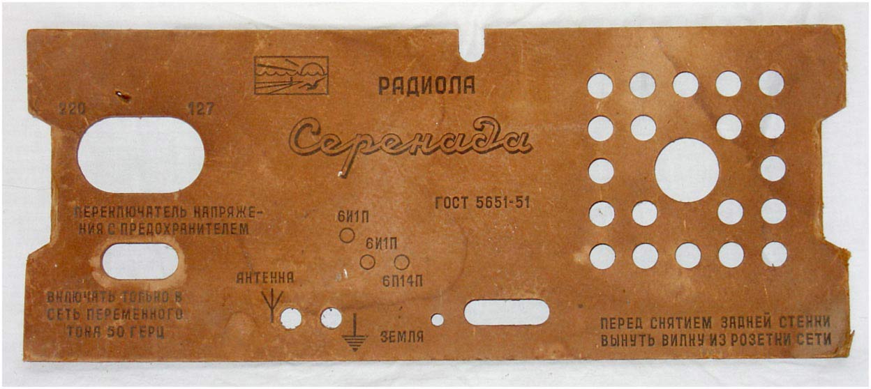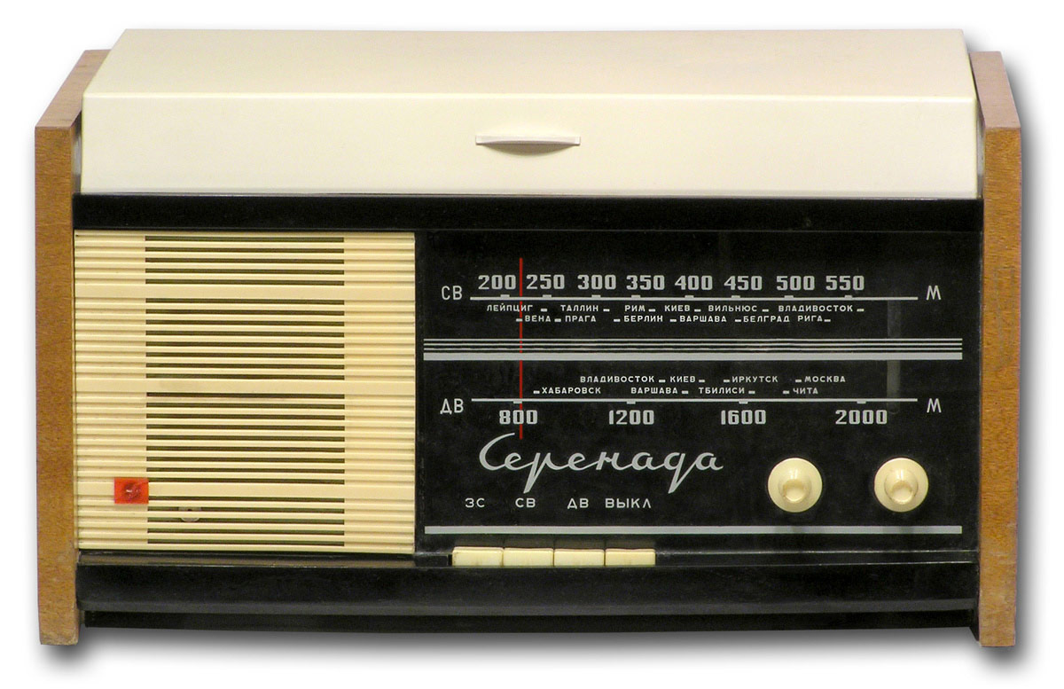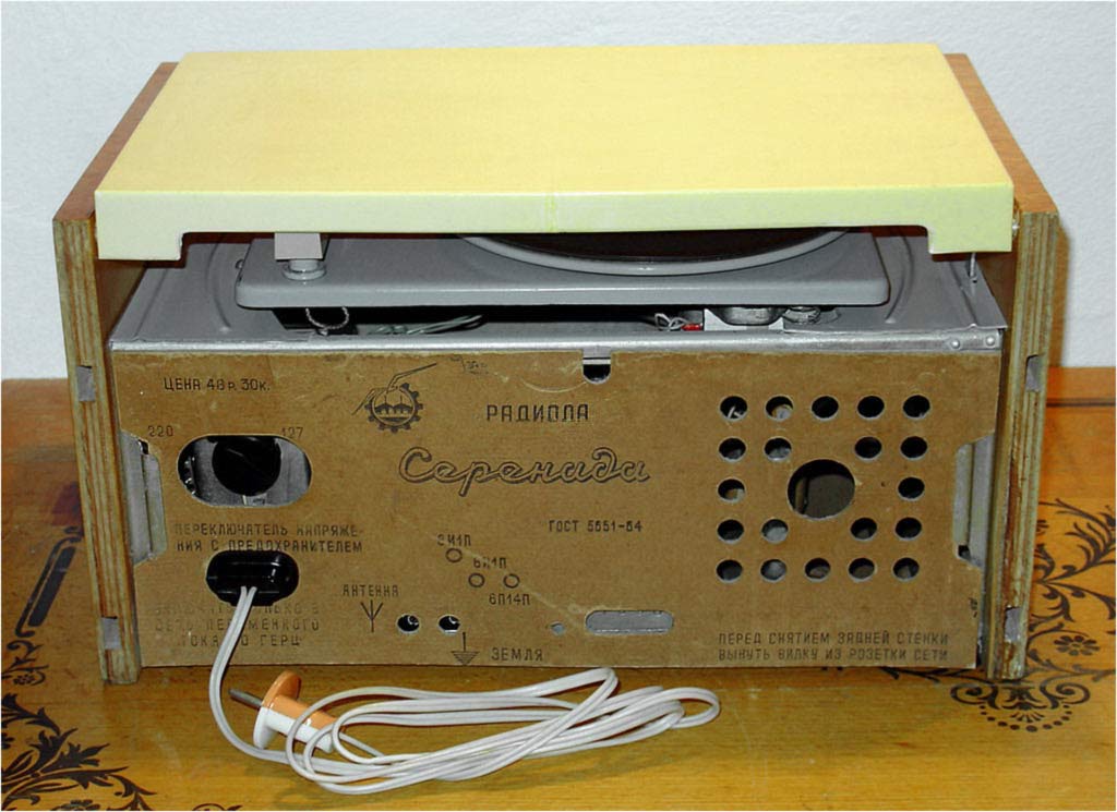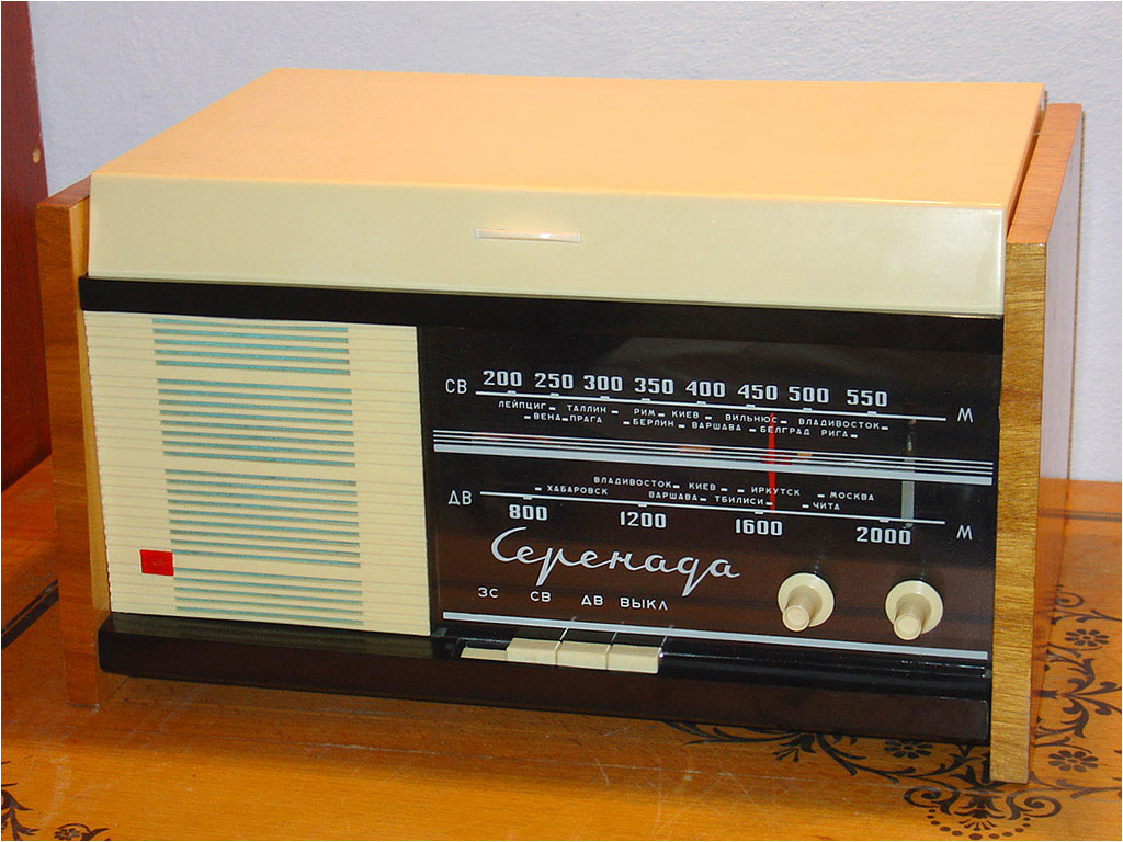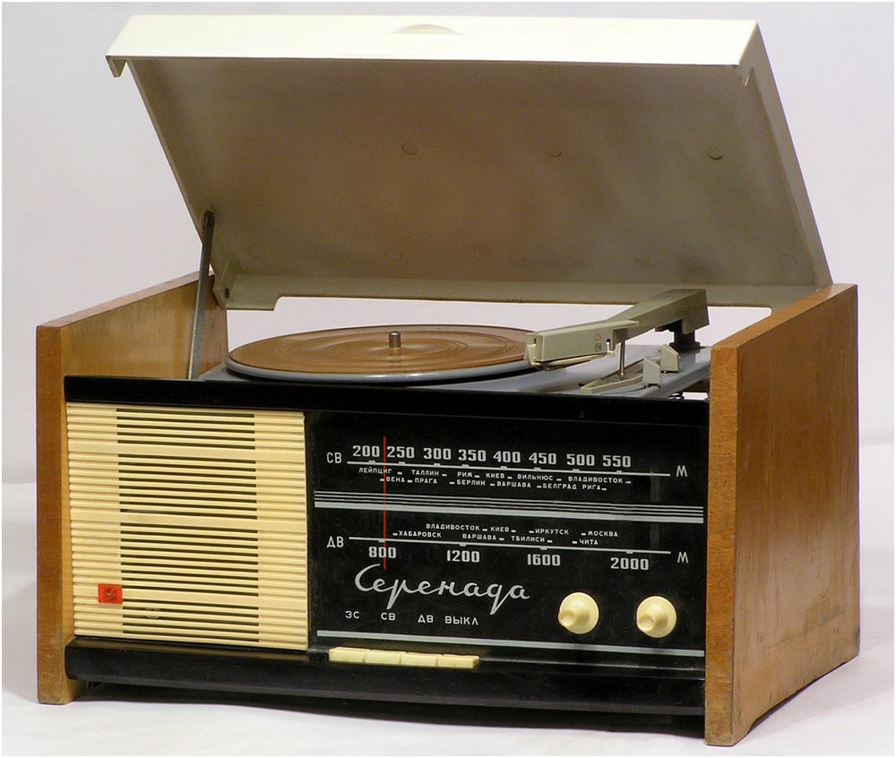 Радиола сетевая ламповая *Серенада* с 1963 года выпускалась Владивостокским заводом *Радиоприбор*. Настольная радиола 4-го класса **Серенада** представляет из себя супергетеродинный радиоприёмник, работающий в диапазонах ДВ, СВ, объединённый с электропроигрывающим устройством ЭПУ-5. В 1965 году было установлено 3-ЭПУ-28, ещё позднее 3-ЭПУ-28М. Радиола собрана на трёх радиолампах 6И1П (2 шт) и 6П14П а также 5 диодах Д2Д (1 шт) и Д7Г (4 шт). Чувствительность радиолы в обоих диапазонах с антенного входа не менее 300 мкВ. Избирательность по соседнему каналу 20 дБ. Избирательность по зеркальным каналам 24 дБ. Номинальная выходная мощность 0,5, максимальная 1 Вт. Диапазон частот, воспроизводимых громкоговорителем 1ГД-10, позднее 1ГД-18, ещё позднее 1ГД-28 - 200...3000 Гц при радиоприёме и 200...6300 при работе ЭПУ. Радиола потребляет при проигрывании пластинок 50 Вт, при приёме 35 Вт. Размеры модели 420х275х240 мм, масса 10 кг. Радиола *Серенада* выпускалась до 1973 года.