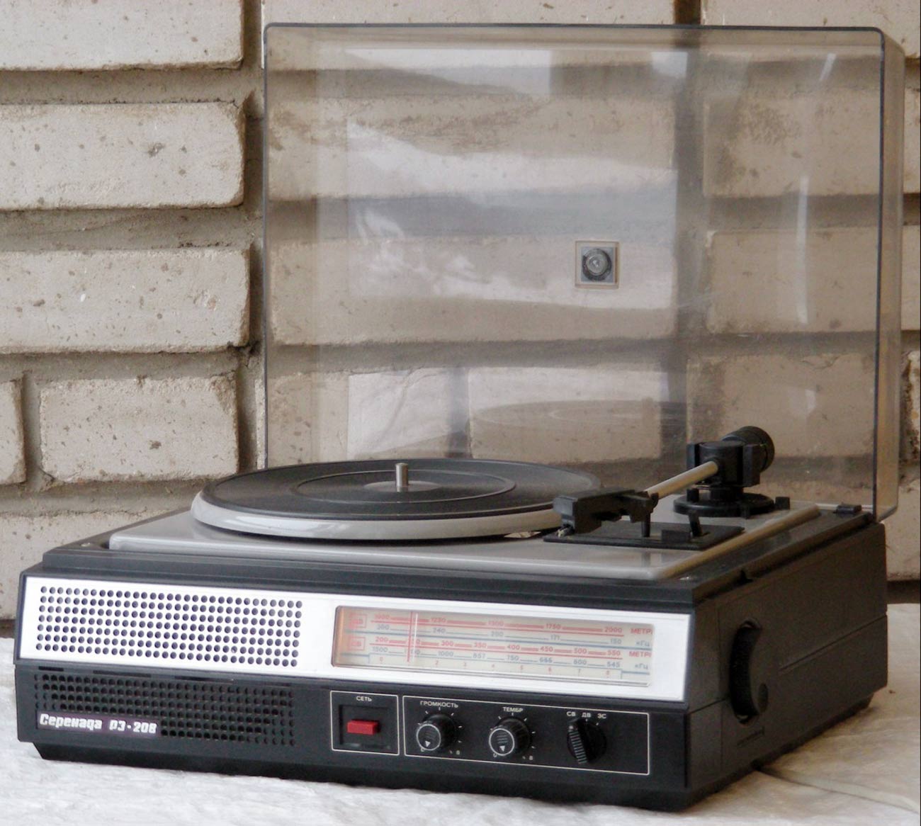 Стационарная транзисторная радиола *Серенада РЭ-208* с 1990 года выпускалась Владивостокским заводом *Радиоприбор*. Cтационарная радиола 2-й группы сложности **Серенада РЭ-208** предназначена для приёма радиостанций в диапазонах ДВ, СВ1, СВ2; воспроизведения грамзаписи; записи и воспроизведения внешним магнитофоном. Диапазоны: ДВ 148,5...283,5 кГц, СВ1 526,5...900,0 кГц, СВ2 900,0...1606,5 кГц. Чувствительность с наружной антенной 140 мкВ. Избирательность 30 дБ. Номинальная выходная мощность 1 Вт. При приёме полоса звуковых частот 160...3550, при работе ЭПУ 160...10000 Гц. Потребляемая мощность 13 Вт. Габариты модели - 485х126x305 мм. Вес - 6,0 кг.