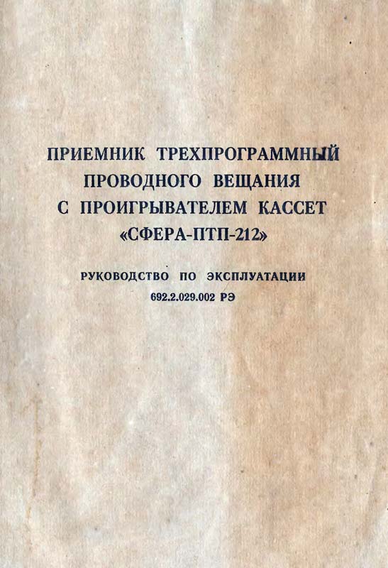 Приёмник трёхпрограммный *Сфера ПТП-212* с кассетным проигрывателем с 1988 года выпускал Ростовский часовой завод. Комбинированное устройство разработано в 1985 году, а выпускалось до 1992 года. Приёмник трехпрограммный абонентский с проигрывателем кассет *Сфера ПТП-212* - официальное наименование комбинированной модели. Авторы разработки ПТП: О.И.Андреев, А.П.Леонтьев, А.А.Солоделов и А.П.Толоченко. Цена комбинированного аппарата 250 руб. Данных по ПТП пока нет. Ростовский часовой завод - оборонное предприятие минавиапрома, в середине 80-х годов пытавшееся наладить выпуск непрофильной продукции, такой как ПТ с проигрывателем кассет **Сфера ПТП-212** и ПТ с магнитофоном **Витязь ПТП-212-1**.
