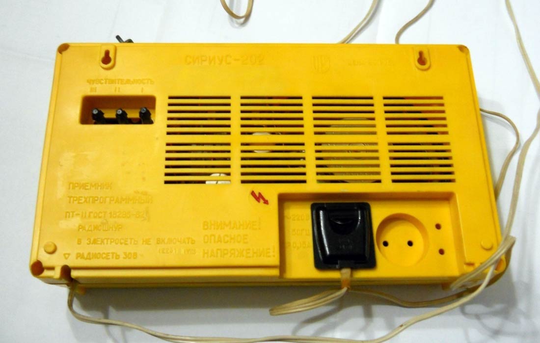 Приёмник трёхпрограммный *Сириус-202* с 1984 года выпускал Ижевский радиозавод. ПТ предназначен для приёма передач транслируемых по проводным уплотнённым трансляционным сетям с напряжением в сети 30 В. Приём 1-й, основной программы осуществляется в двух режимах: основном (с усилением) и дополнительном (без усиления сигнала). В дополнительном режиме подключение к электросети не нужно. Приём 2-й и 3-й радиочастотных программ и 1-й программы с усилением осуществляется дополнительными регуляторами. Имеется гнездо для подключения магнитофона на запись и для подключения дополнительного громкоговорителя. Включение ПТ в сеть контролируется индикаторной лампочкой.