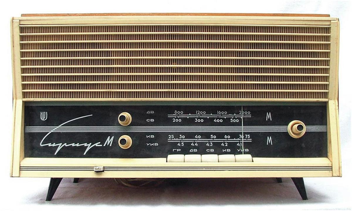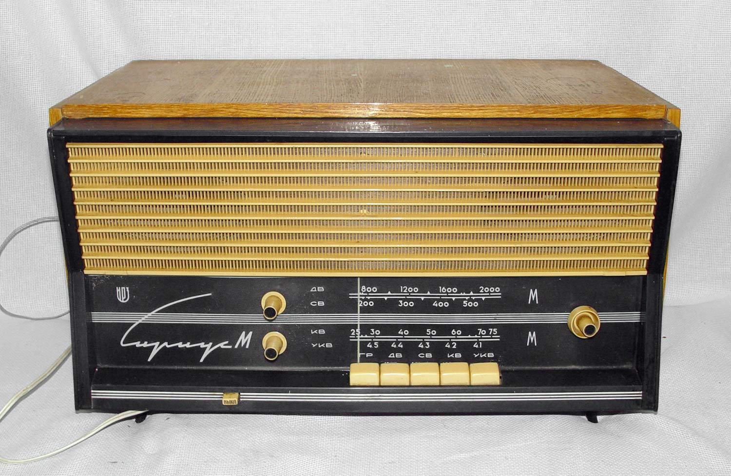 Радиола сетевая ламповая *Сириус-М* с 1965 года выпускалась Ижевским радиозаводом. Сетевая настольная ламповая радиола третьего класса **Сириус-М** создана на основе радиолы **Сириус** и по конструкции, параметрам, схеме и внешнему оформлению схожа с ней, лишь за добавлением обзорного диапазона коротких волн 25...75 метров которого не было в базовой модели, да соответствующими изменениями в электрической схеме. Радиола **Сириус-М** предназначена для приёма в диапазонах ДВ, СВ, КВ, УКВ и воспроизведения грамзаписи. Она имеет АРУ, регулировку тембра по ВЧ и акустическую систему, состоящую из 2-х динамических громкоговорителей 1ГД-28. В радиоле применены лампы 6НЗП, 6И1П, 6К4П, 6Н2П, 6П14П. ПЧ по AM тракту 465 Кгц, ЧМ 6,5 Мгц. Чувствительность в диапазонах ДВ, СВ 200 мкВ, KB 300 мкВ, УКВ 30 мкВ. Избирательность в диапазонах ДВ, СВ, КВ 26 дБ. Полоса воспроизводимых частот в АМ тракте 150...3500 Гц, при прослушивании грамзаписи и по ЧМ - 150...7000 Гц. Номинальная выходная мощность 0,5 Вт, потребляемая мощность 65 Вт. Масса 14 кг.