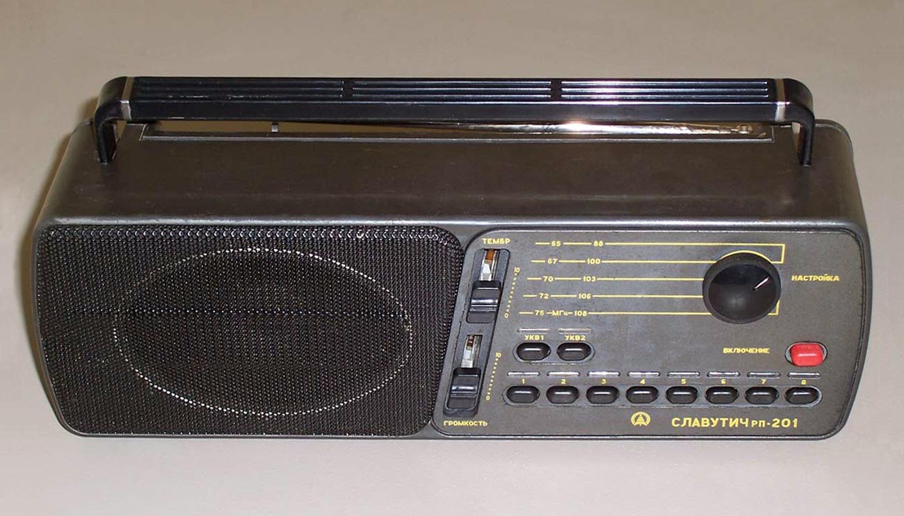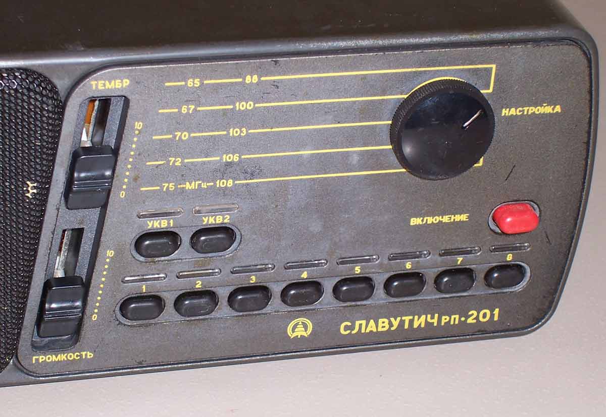 Портативный транзисторный радиоприёмник *Славутич РП-201* с I-кв 1991 года выпускал *Киевский радиозавод*. Радиоприёмник *Славутич РП-201* предназначен для прослушивания вещательных программ в двух диапазонах УКВ: УКВ-1 - 65...75 мгц и УКВ-2 88...108 мгц. Имеется восемь фиксированных настроек, а также плавная настройка на частоту радиовещательной станции в обоих диапазонах. Чувствительность, ограниченная шумами, при соотношении сигнал/шум 26 дБ по напряжению 5 мкВ. Диапазон частот, воспроизводимых АС 200...8000 Гц. Коэффициент гармоник менее 5%. Максимальная выходная мощность 1 Вт. Питание приёмника осуществляется от шести батарей типа А-343 или от электрической сети 220 вольт. Потребляемая от сети мощность не более 5 Вт.