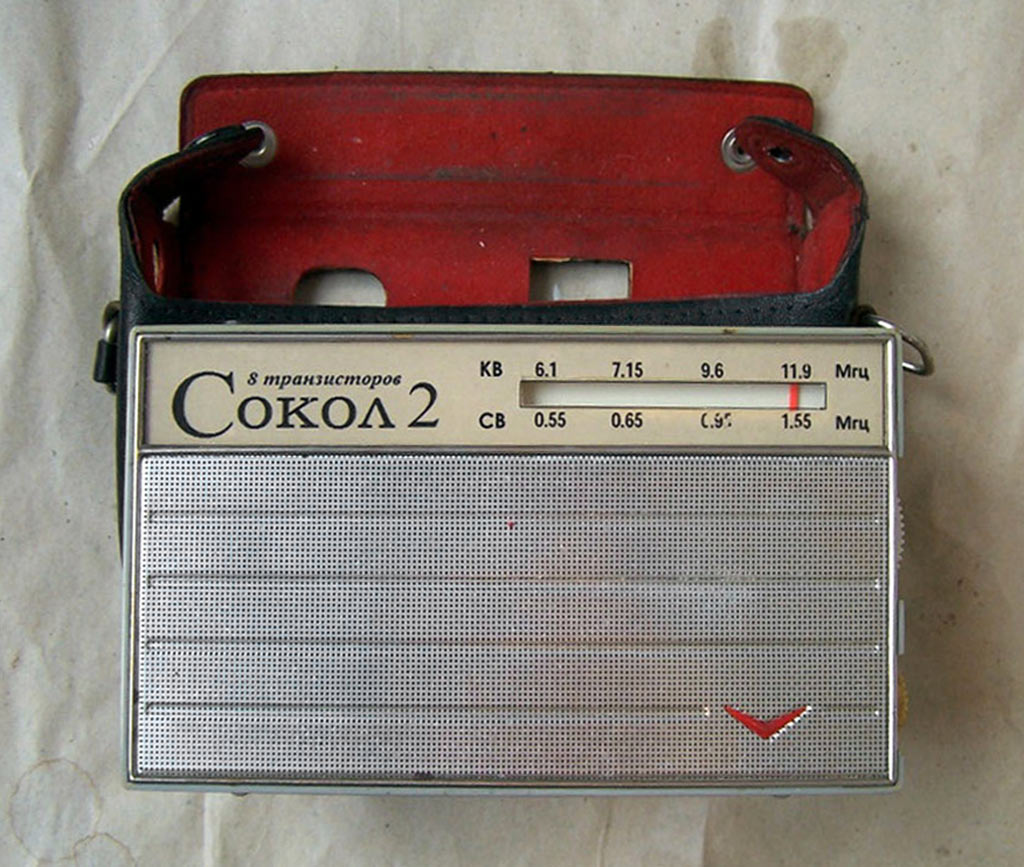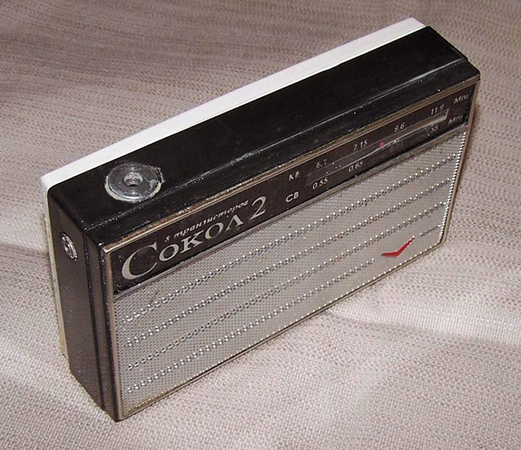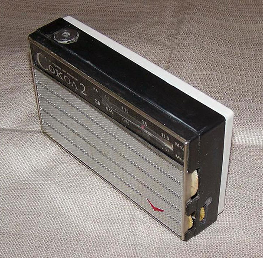 Портативный радиоприёмник *Сокол-2* с 1965 года выпускал Московский Государственный радиозавод *Красный Октябрь*. Приёмник создан на базе приёмника **Сокол**, отличаясь от него введённым КВ диапазоном, вместо диапазона ДВ. Приёмник представляет собой супергетеродин, собранный на 8-ми транзисторах. Он предназначен для приёма передач радиовещательных станций в диапазоне СВ на внутреннюю магнитную антенну, а в диапазоне КВ - 25...49 м, на штыревую телескопическую антенну. Реальная чувствительность: на СВ - 0,8 мВ/м, на КВ - 100 мкВ. Избирательность по соседнему каналу на СВ - 26 дБ. Ослабление сигнала зеркального канала на СВ 26 дБ, КВ 12 дБ. ПЧ - 465 кГц. Полоса воспроизводимых звуковых частот 450...3000 Гц. Номинальная выходная мощность 100 мВт. Источник питания - батарея Крона или аккумулятор 7Д-0,1. Потребляемый ток без сигнала - 5,5 мА. Работоспособность сохраняется при снижении напряжения питания до 5,6 В. Длительность работы приёмника при средней громкости: от батареи Крона 15...30 часов, от аккумулятора около 12 часов. Габариты приёмника 152х90х35 мм. Масса 420 грамм. Радиоприёмник *Сокол-2* комплектовался кожаным футляром с ремнём.