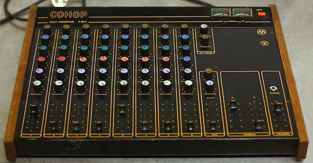Пульт микшерский *Сонор М-08-2* с 1986 года выпускал Кишинёвский завод *Микропровод*. Пульт позволяет формировать звуковую фонограмму в моно и стерео режимах от 9 независимых источников сигнала. Диапазон рабочих частот 20...20000 Гц. Коэффициент нелинейных искажений 0,25%. Уровень шумов -60 дБ. Потребляемая от сети мощность 15 ВА. Габариты пульта 550х450х100 мм. Его вес 8,5 кг. Более подробно о микшерском пульте в его инструкции.