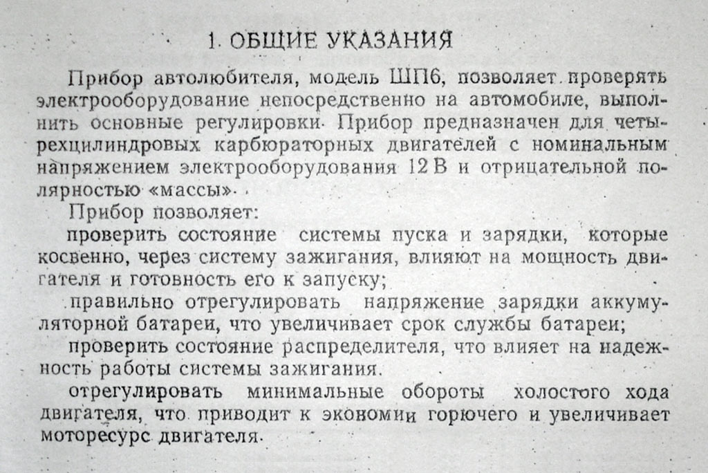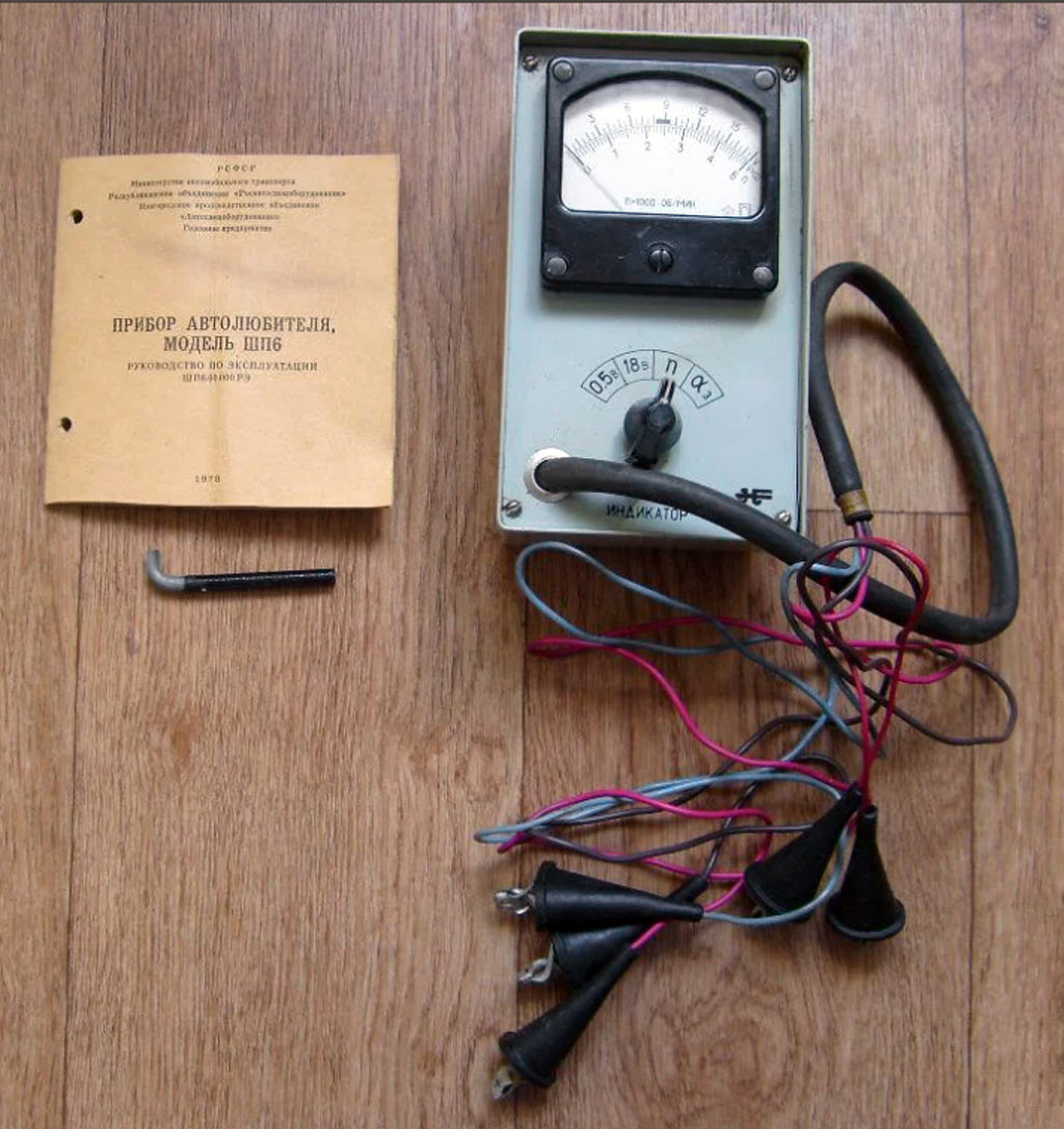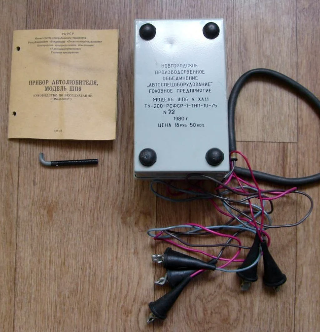 Прибор автолюбителя модель *ШП-6* выпускался с 1976 года в городе Новгороде. Прибор предназначен для проверки электрооборудования автомобиля.