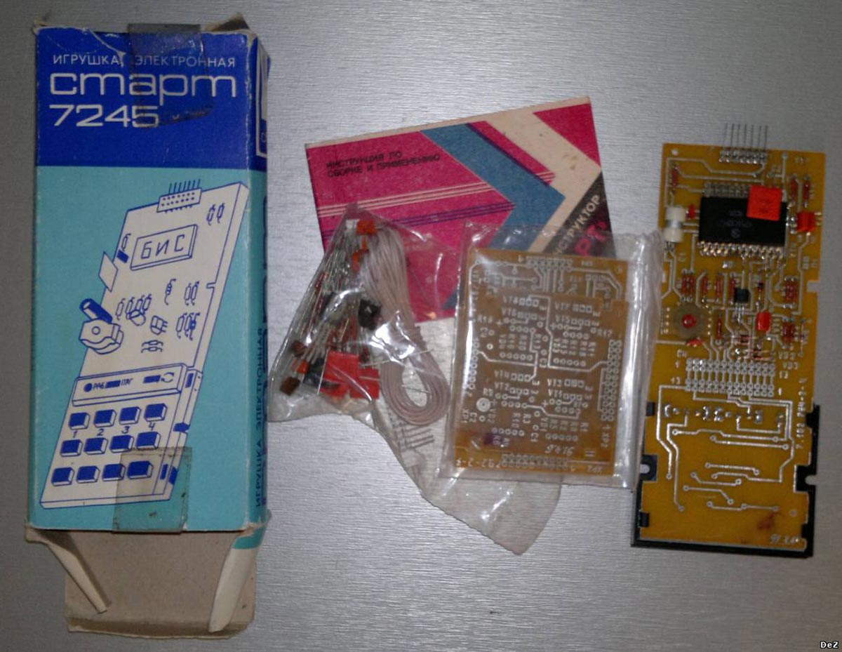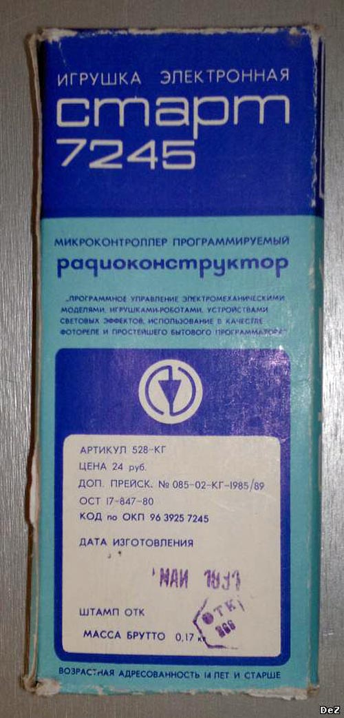 Радиоконструктор *Старт-7245* (Микроконтроллер программируемый) выпускался с I-кв 1990 года. В РК *Старт-7245* входит полностью готовая плата с микроконтроллером серии К145ВМ1901 и две печатные платы с комплектом деталей для сборки двух вариантов выходных каскадов: модуля однополюсных электронных реле типа *ключ* на составном транзисторе* (схема Дарлингтона) и модуля двух двухполярных электронных реле, ныне именуемых *Н-бридж*. Кроме того, в набор входит толстая инструкция и комплект схем, в том числе схема самого микроконтроллера. Контроллер имеет клавиатуру с парой переключателей (*работа-программирование* и *однократный-циклический*). Клавишами с цифрами и стрелками задается направление и длительность движения в любую из четырёх сторон. Работа программы сопровождается миганием и мерцанием светодиода.