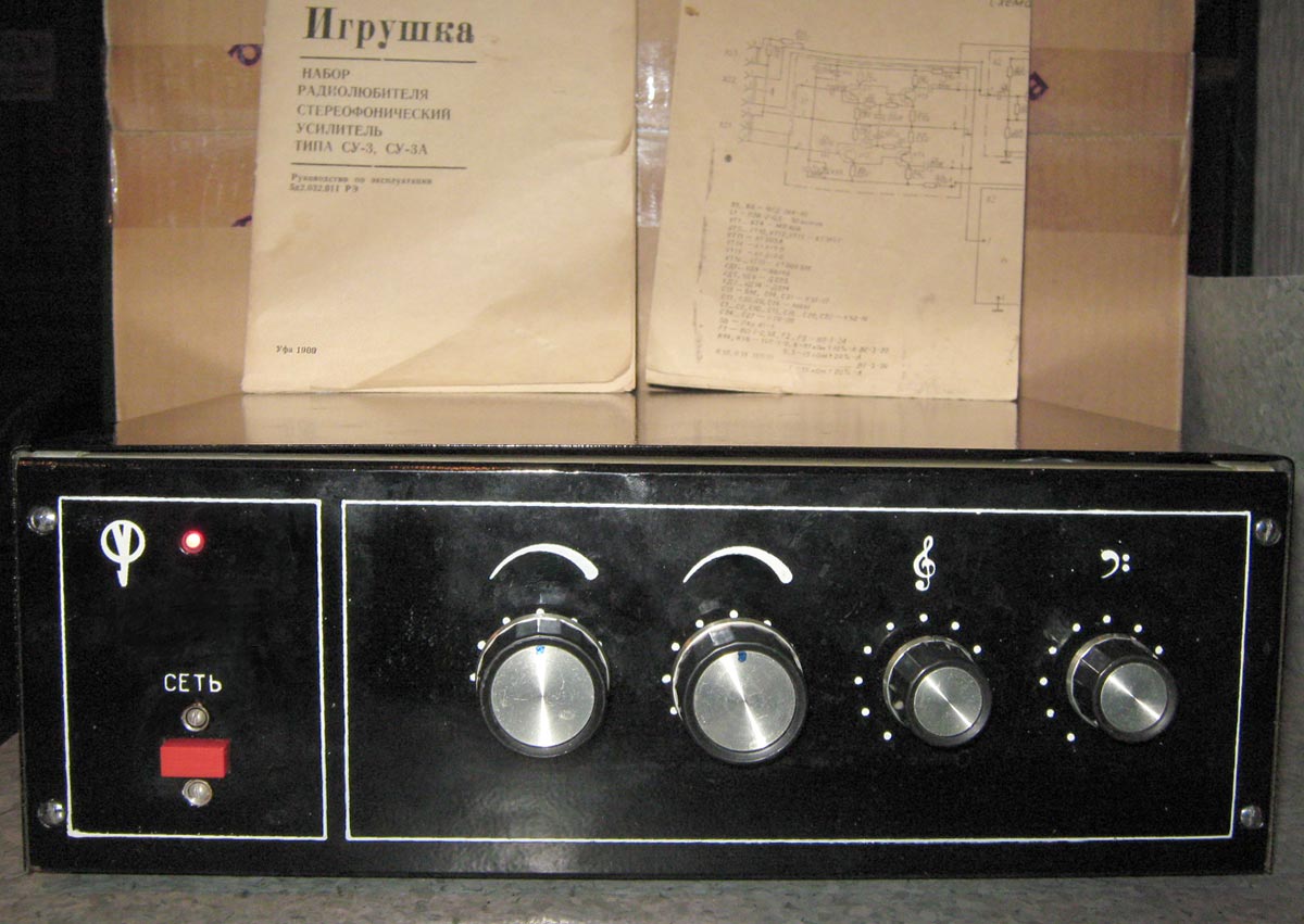 Радиоконструктор *СУ-3* с 1988 года выпускал Уфимский опытный завод *Промсвязь*. Набор является техническим пособием для получения навыков по сборке, монтажу и настройке радиоаппаратуры радиолюбителями средней квалификации и учащимися старшего школьного возраста. При правильно выполненной сборке и настройке из набора может быть изготовлен высококачественный стереофонический усилитель для воспроизведения моно и стереофонических программ. Набор выпускался двух типов: *СУ-3* без громкоговорителей и *СУ-ЗА,* с двумя громкоговорителями 10ГД-36К-40. Усилитель имеет параметры: номинальная выходная мощность 2х6 Вт; максимальная 2х15 Вт; диапазон рабочих частот 20...20000 Гц; коэффициент нелинейных искажений 1%. Цена первого набора 35 рублей 50 копеек, второго 56 рублей 50 копеек.