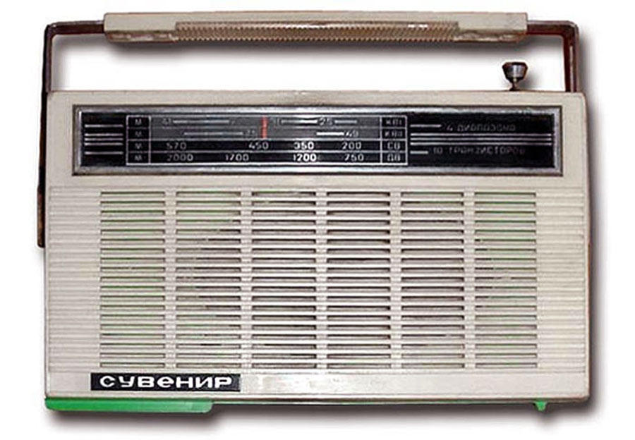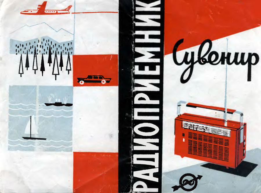 Портативный радиоприёмник 2-го класса *Сувенир* с 1965 года выпускал Воронежский радиозавод. Супергетеродин на 10-ти транзисторах и 2 диодах. Приёмник предназначен для работы в ДВ, СВ и 2 полу-растянутых КВ поддиапазонах. В диапазонах ДВ и СВ приём осуществляется на магнитную антенну, КВ на телескопическую. Чувствительность в ДВ - 2,0 мВ/м, СВ - 1,0 мВ/м, KB - 100 мкВ. Избирательность по соседнему каналу при расстройке на ±10 кГц - 40 дБ. Полоса воспроизводимых звуковых частот - 200...4000 Гц. Номинальная выходная мощность - 150 мВт. Ток покоя 6 мА, при номинальной мощности 50 мА. Питание от двух батарей КБС-Л-0,5. Работоспособность приёмника сохраняется при снижении напряжения до 4 В. Футляр изготовлен из цветной ударопрочной пластмассы с ручкой переноски. К приёмнику можно подключить антенну, заземление и головные телефоны. Габариты РП 260х160х67 мм. Вес с батареями 1,6 кг. РП имел несколько вариантов оформления.