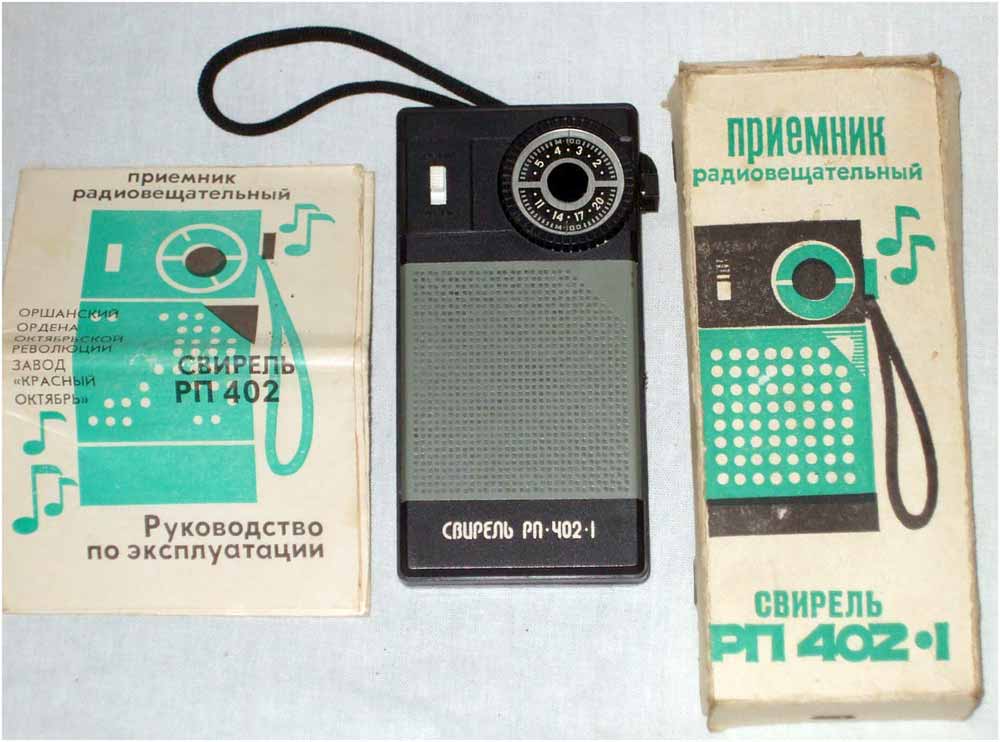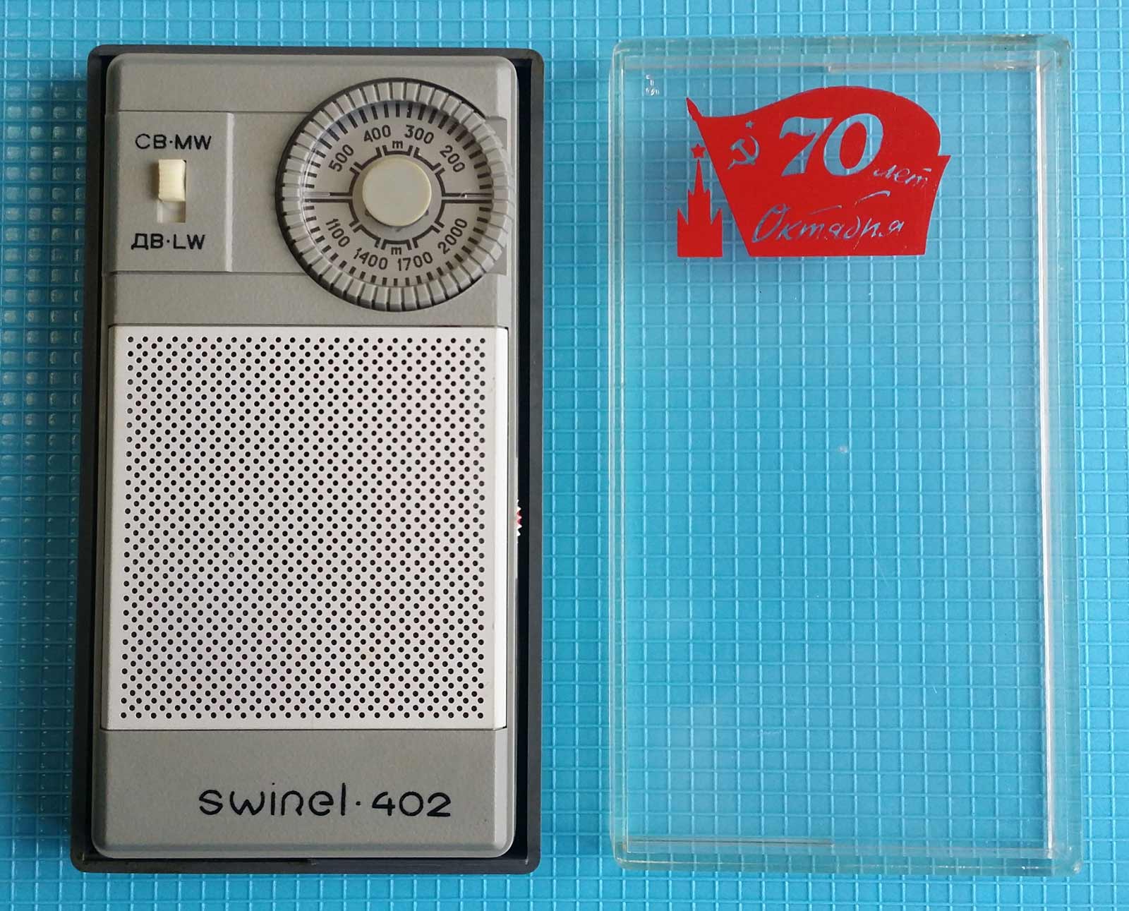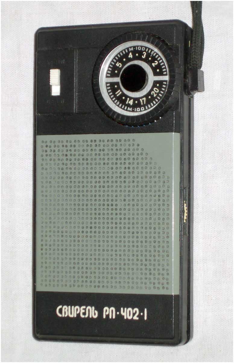 Малогабаритные радиоприёмники *Свирель-2*, *Свирель-402* и *Свирель РП-402-1* выпускал с 1983, 1989 и 1991 года Оршанский завод *Красный Октябрь*. Приёмники **Свирель-2** (402) предназначены для приёма радиостанций в диапазоне ДВ и СВ на внутреннюю магнитную антенну. Питание любого приёмника осуществляется от трех элементов типа 316. Продолжительность работы любого из приёмников, при питании от элементов типа 316 составляет 40...45 часов, при средней громкости. Радиоприёмник **Свирель-2** стал дальнейшей модернизацией серийного однодиапазонного приёмника **Свирель**, выпускаемого с 1981 года. Приёмник **Свирель-402** заменил **Свирель-2**, а приёмник **Свирель РП-402** выпускаемый с 1986 года это тот же радиоприёмник **Свирель-402**, но с приставкой РП по новому ГОСТ-у. Приёмник **Свирель РП-402-1** это модернизация предыдущих моделей. Диапазоны: ДВ - 148,0...285,0 кГц, СВ - 525,0...1607,0 кГц. Чувствительность в диапазоне ДВ - 2,5 мВ/м, СВ - 1,5 мВ/м. Селективность 20 дБ. Максимальная выходная мощность 100 мВт. Диапазон частот по звуковому давлению 450...3150 Гц. Радиоприёмники выпускались и на экспорт.