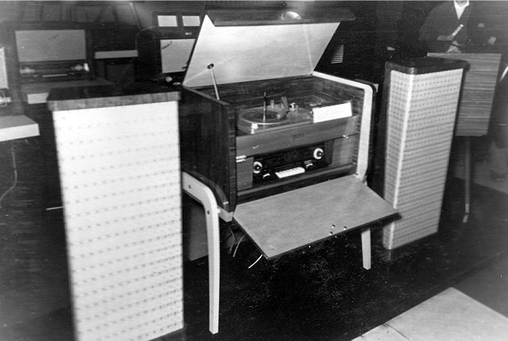 Радиола сетевая ламповая стереофоническая *Тейка* в 1959 году разработал Рижский завод Радиотехника» имени А.С.Попова. Радиола *Тейка* дает возможность приема радиовещательных станций, работающих в диапазонах ДВ, СВ, КВ и УКВ и проигрывать грампластинки с нормальными и стереофоническими записями. В приёмнике радиолы частично применен печатный монтаж. Двухканальный усилитель НЧ радиолы при нажатии клавиши *моно* объединяется. При нажатии клавиши *стерео* усилители работают каждый на свою АС. Акустическая система радиолы состоит из двух выносных тумб, в каждой из которых работают по три громкоговорителя; одному низкочастотному 6ГД-1 и по два высокочастотных 1ГД-1. Электропроигрыватель радиолы имеет автомат, дающий возможность автоматического проигрывания десяти пластинок различных диаметров. Автомат ЭПУ позволяет в любое время прекратить проигрывание, повторить его или начать проигрывание следующей пластинки. Управление автоматом осуществляется с помощью трех клавиш. Сколько было выпущено радиол - не установлено.