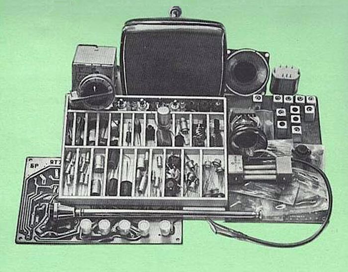 Телевизионный приёмник чёрно-белого изображения *Телеконструктор* с 1980 года выпускал Ленинградский завод *Магнетон*. Из телевизионного конструктора содержащие все элементы, платы, корпус, блок питания и инструкцию радиолюбитель мог собрать работающий в любом из 12 каналов малогабаритный телевизор. Диагональ экрана 8 см. Чувствительность около 20 мкВ. Номинальная выходная мощность 100 мВт. Питание от сети или аккумулятора. Радиоконструктор разработан на базе серийного телевизора *Электроника Ф1-01* этого же завода. Цена конструктора - 110 рублей.
