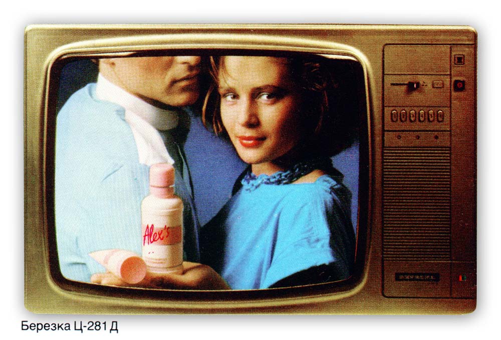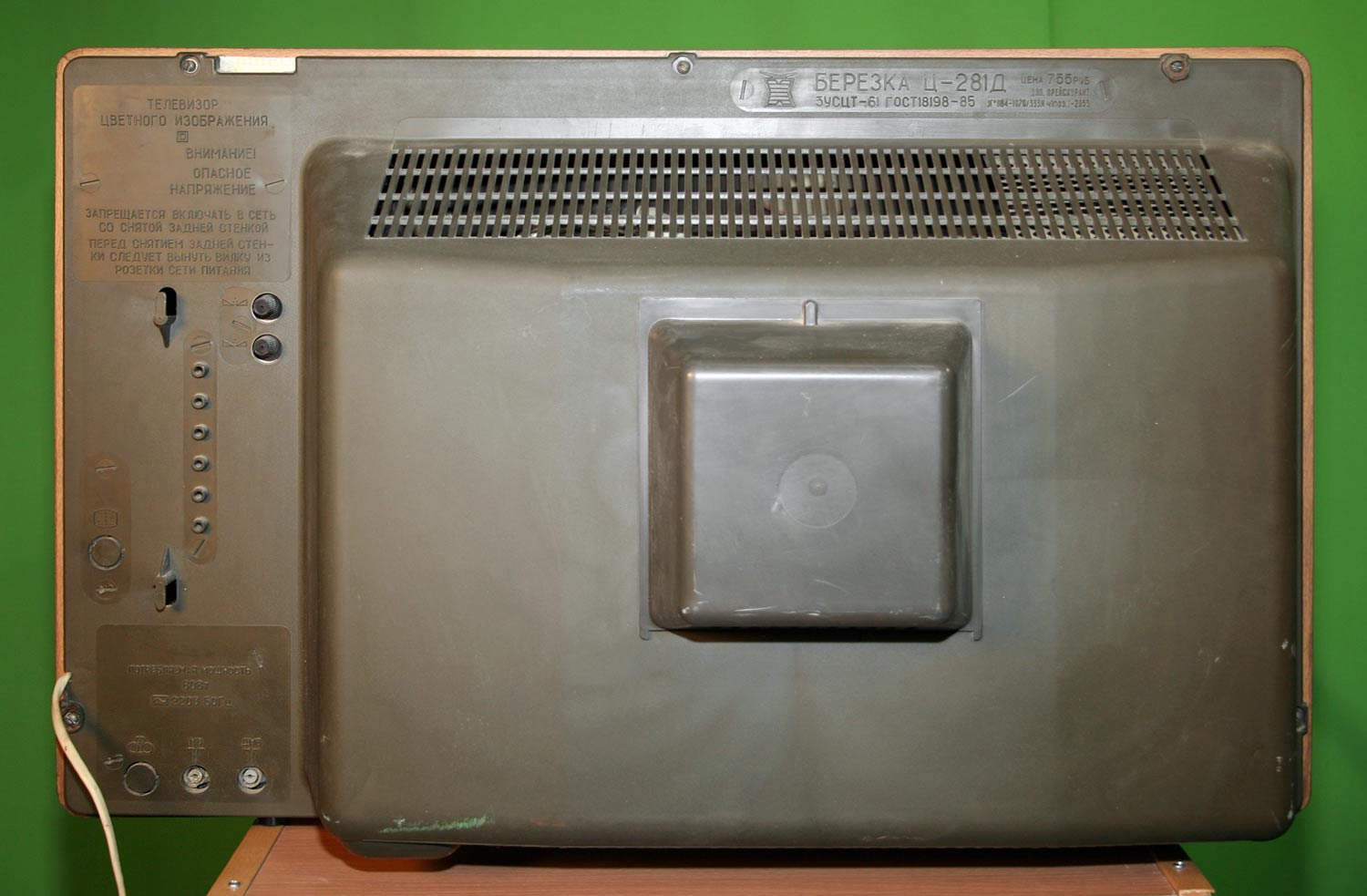 Телевизионный приёмник цветного изображения *Берёзка Ц-281/Д* с I-кв 1986 года выпускал Харьковский завод *Коммунар*. Цветной унифицированный стационарный цветной телевизор типа 3УСЦТ-61 - **Берёзка Ц-281/Д** предназначен для приёма цветных программ ТВ на любом канале метрового и дециметрового диапазона (индекс *Д*). Полупроводниково-интегральный телевизор кассетно-модульной конструкции, собранный на основе моношасси с 5-ю модулями: радиоканала, цветности, строчной и кадровой разверток, блока питания. Телевизор имеет кинескоп типа 61ЛК5Ц с самосведением и углом отклонения лучей 90°, сенсорное устройство выбора одной из шести настроенных телевизионных программ, световую индикацию выбранной телевизионной программы, гнёзда подключения магнитофона, головных телефонов, бестрансформаторный блок питания, позволяющий эксплуатировать телевизор без дополнительной стабилизации напряжения электрической сети. Корпус телевизора облицованный декоративной отделочной плёнкой или пенополиуретаном с окраской под ценные породы древесины. Чувствительность в диапазоне МВ - 55 мкВ, ДМВ - 90 мкВ. Диапазон воспроизводимых звуковых частот - 80...12500 Гц. Номинальная выходная мощность канала звука - 1,5 Вт, максимальная - 2,5 Вт. Потребляемая мощность - 80 Вт. Габариты телевизора - 495 х 748 х 550 мм. Масса - 32 кг.
