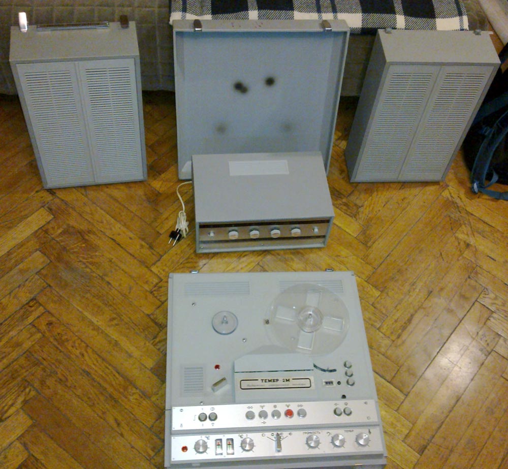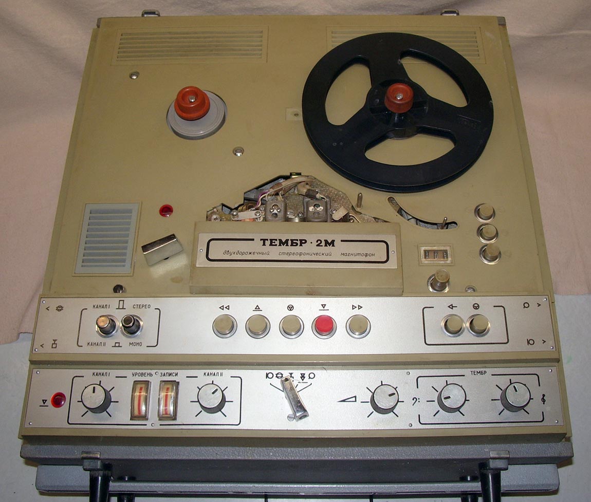 Стереофонический магнитофон *Тембр-2М* выпускал с 1977 года Горьковский завод имени Петровского. Трёхскоростной транзисторный магнитофон предназчен для записи и воспроизведения фонограмм. В комплект входит усилитель *П-70* (он есть тут на сайте) с двумя акустическими системами. Магнитофон имеет контрольные громкоговорители. Краткие характеристики: Скорость протяжки ленты: 4,76, 9,53 и 19,05 см/сек. Номинальная выходная мощность на собственную АС - 2 Вт. Рабочий диапазон частот соответственно скорости: 63...6300, 63...12500 и 40...16000 Гц. Габариты магнитофона - 485х445х225 мм. Масса - 25 кг. Цена комплекта 665 рублей.