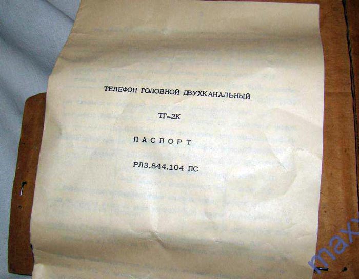 Телефон головной двухканальный *ТГ-2К* выпускался предположительно с 1980 года. Предназначен для работы в составе аппаратуры связи. Два канала. Диапазон воспроизводимых звуковых частот 100...5000 Гц. Входное сопротивление 300 Ом. Чувствительность 8 Па/В. Масса телефона 300 г. Применены излучатели ТДМ-1Э.