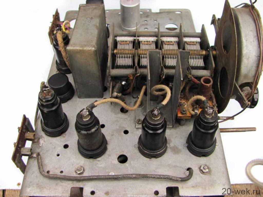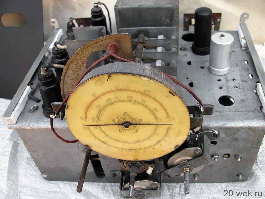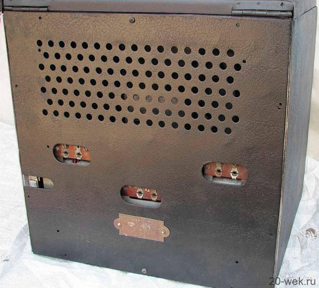 Радиоприёмники *ТМ-7* и *ТМ-8* выпускались с 1938 года Александровским радиозаводом № 3. Радиоприёмники **ТМ-7** и **ТМ-8** предназначены для использозания на вещательных радиотрансляционных узлах. В небольшом количестве они были реализованы и в розничной торговле. Как к приёмникам трансляционных узлов, к ним предъявлялись следующие требования: при хорошей чувствительности и избирательности иметь на выходе мощность, достаточную для передачи по воздушной или кабельной линии и возбуждения предварительного усилителя узла. Для этого достаточна выходная мощность порядка 200...250 милливатт. Так как приёмники предназначены для приёма радиовещательных станций в любых пунктах Союза ССР, то они должны быть всеволновыми. Ко времени выпуска этих приёмников, наиболее подходящим по своим показателям был приёмник **СВД-М**. На его базе и стали выпускаться эти приёмники. Этим объясняется то, что оба приёмника как по схеме, так и по конструкции почти идентичны с приёмником **СВД-М** и обладают примерно теми же параметрами. Основное отличие заключается в том, что в них отсутствует последняя ступень усиления мощности. Между собой они различаются тем, что **ТМ-8** предназначен для питания от сети переменного тока, а **ТМ-7** от аккумуляторных батарей, поэтому в нём отсутствует блок выпрямителя. Кроме того, для экономии аккумуляторов в схеме модели **ТМ-7** отсутствует оптический индикатор настройки лампа 6Е5, который имеется в схеме приёмника **ТМ-8**. Приёмники оформлены в железных ящиках, окрашенных снаружи в чёрный цвет, а изнутри алюминиевой краской. Шасси, аналогичны шасси приёмниа **СВД-М** и укреплены в футлярах на резиновых амортизаторах. Верхняя крышка футляра открывается и предоставляет доступ к верхней части шасси. Задняя стенка футляра перфорирована (для вентиляции). На переднюю сторону выведены ручки управления: это переключатель диапазонов, ручка настройки, регулятора громкости и тембра по ВЧ. В приёмнике **ТМ-8** последняя ручка является также выключателем питания. На заднюю сторону выведены гнёзда антенны, земли, звукоснимателя, а также выходные гнёзда приёмника. Выходная мощность обоих приёмников на сопротивление 600 ом и при клирфакторе 5% равна 200 мВт. ПЧ равна 445 кгц. Диапазон принимаемых радиочастот и волн: А - 150...400 кГц (2000...750 м). Б - 540...1500 кГц (556...200 м). Г - 3500...9000 кГц (85,7...33,3 м). Д - 8,2...18 мГц (36,6...16,7 м). Чувствительность по высокой частоте при 30% модуляции и выходной мощности 0,02 ватта, на всех диапазонах около 50 мкв. Чувствительность по НЧ (напряжение на гнёздах звукоснимателя) при номинальной выходной мощности 200 мв. Ослабление сигнала при расстройке приёмника на 10 кгц: на диапазонах А, Б в 10 раз, Г, Д в 5 раз. Ослабление зеркальной помехи на диапазонах А, Б в 1000 раз, Г, Д в 55 раз. Частотная характеристика по низкой частоте от входа звукоснимателя, до выхода радиоприёмника прямолинейна в пределах от 60 до 6000 гц. Приёмник **ТМ-8** потребляет 75 вт. Приёмник **ТМ-7** требует 6,5 в по накалу, при токе 2,65 а, а по аноду 240 в, при токе в 75 ма.