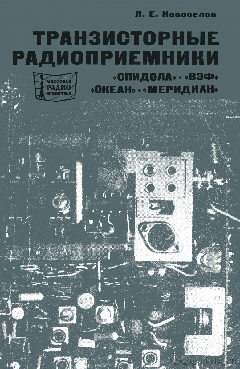 Книги содержит технические и эксплуатационные характеристики переносных транзисторных приемников II класса «Спидола», «ВЭФ-Спидола», «ВЭФ-Спидола-10», «ВЭФ-12», «ВЭФ-201» и «Океан», краткое описание принципиальных схем и конструкций, карты режимов по постоянному и переменному току, электромонтажные схемы печатных плат и приемников в целом, кинематические схемы верньерных устройств, материалы по настройке, регулировке и проверке основных параметров. Кроме того, в книгах рассмотрены причины возникающих в процессе эксплуатации неисправностей, способы их отыскания и методы устранения, а также приведены характеристики моточных изделий, громкоговорителей и полупроводниковых приборов. Книги рассчитана на подготовленных радиолюбителей и специалистов по ремонту транзисторных приемников. (Между прочим ОЧЕНЬ важное замечание!)