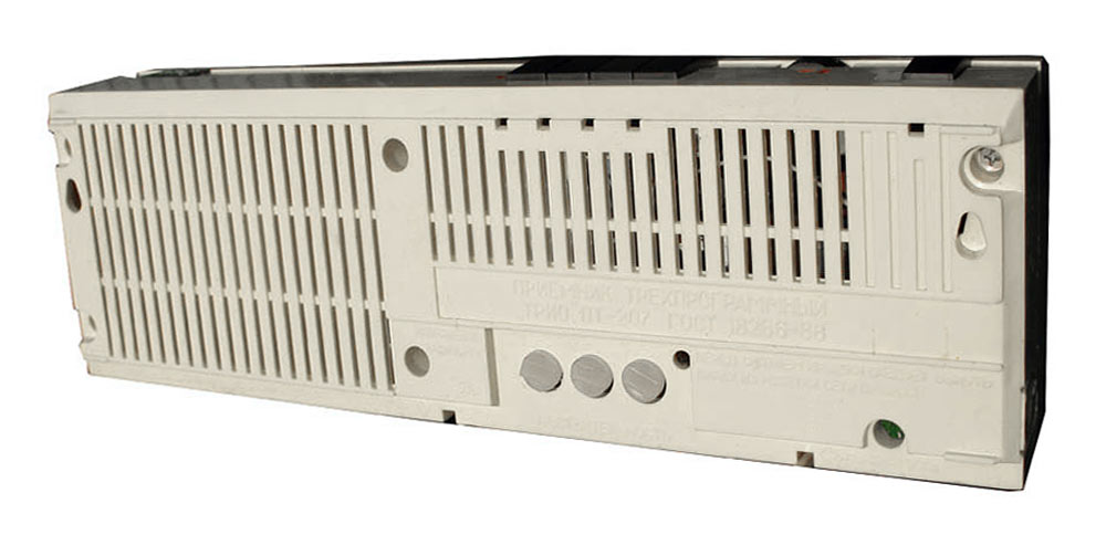 Приёмник трёхпрограммный *Трио ПТ-207* с 1989 года выпускал Владикавказский завод Радуга. ПТ **Трио ПТ-207** предназначен для работы в радиосетях трёхпрограммного сетевого вещания. Напряжении в радиотрансляционной линии 30 (15) В. Диапазон воспроизводимых частот по НЧ каналу по звуковому давлению 100...12500 Гц, по ВЧ каналам 100...7000 Гц. Номинальная выходная мощность 1,2 Вт. Потребляемая мощность 4 Вт. Габариты ПТ - 115х360х65 мм. Масса 1,6 кг. Первоначальная цена 25 рублей. Позже цена на ПТ менялась многократно.