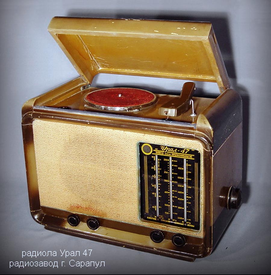 Радиола сетевая ламповая *Урал-47* с 1947 года выпускалась на Сарапульском радиозаводе им. Орджоникидзе, а с осени 1948 года и на Заводе № 626 НКВ (Свердловский завод Автоматики). Радиола **Урал-47** представляет собой шестиламповый приёмник, обьединённый вместе с электропроигрывающим устройством. Диапазоны частот: ДВ 150...420 кГц, СВ 520...1500 кГц, КВ 4,4...15,5 МГц. Чувствительность приёмника - 100 мкВ. Избирательность - 26 дБ. Максимальная выходная мощность - 4 Вт. Диапазон звуковых частот при приёме - 100...4000 Гц, при прослушивании грампластинок - 100...6000 Гц. Питание осуществляется от электрической сети. Потребляемая мощность 80 Вт при приёме вещательных радиостанций и 100 Вт при проигрывании грампластинок.
