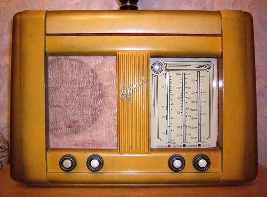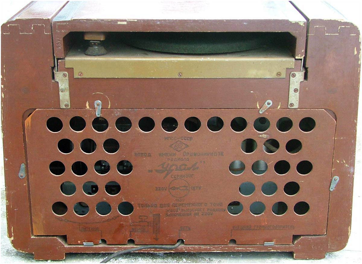 Радиола сетевая ламповая *Урал-49* с начала 1949 года выпускалась на Сарапульском заводе имени Серго Орджоникидзе и на Заводе № 626 НКВ (Свердловский завод Автоматики). Внешний вид и конструкция радиолы **Урал-49** стали основой для создания последующих радиол серии **Урал**. Радиола **Урал-49** состоит из 6-ти лампового приёмника и электропроигрывателя на 78 об/мин. Диапазоны частот до 1951 года: ДВ 150...410 кГц, СВ 520...1500 кГц, КВ 4,5...15,5 МГц. Выходная мощность 2 Вт, при коэффициенте искажений 7%. Полоса пропускания всего тракта обеспечивает воспроизведение диапазона звуковых частот 100...4000 Гц. АРУ обеспечивает изменение напряжения на выходе на 10 дБ при изменении на входе на 26 дБ. Потребляемая мощность 100 Вт (при асинхронном двигателе 110 Вт) и 80 Вт при приёме. При переключении на работу ЭПУ освещение шкалы и индикатора выключается. Габариты радиолы 549х393х310 мм, его вес 24 кг. В начале 1950 года радиола модернизирована в **Урал-49М**. Изменена электрическая схема, в которой некоторые элементы и лампы заменены другими. Изменены диапазоны. СВ диапазон расширен до 1600 кГц, а КВ диапазон 4...12,1 МГц подогнан под будущий ГОСТ 1951 г. ЭПУ первых радиол состояло из синхронного электродвигателя типа СМ-1 и электромагнитного звукоснимателя AM, смонтированых на панели из дерева. Включение звукоснимателя и двигателя производилось отдельным переключателем. Электродвигатель был подключен к силовому трансформатору так что при переключении на любое из питающих напряжений к нему всегда подводилось 110 вольт. В модернизированной радиоле ЭПУ изменено. В нём применён асинхронный электродвигатель типа ДАГ с диском и электромагнитный звукосниматель ЗС. Введён автостоп, связанный с рычагом звукоснимателя и автоматически подающий питание на двигатель в зависимости от положения звукоснимателя относительно грампластинки. ЭПУ собрано на шасси из металла. Внешнее оформление и характеристики базовой и модернизированной радиол одинаковы. В начальный период модернизации были радиолы имевшие комбинированные элементы, например диапазон 19 метров и новый электродвигатель. Свердловская радиола отличалась логотипом УРЗ (Уральский Радио Завод) и чёрной шкалой, а вверху, около индикатора точной настройки, на фоне красного знамени был черный силуэт памятника Я.М.Свердлову. Отмечу, что Свердловский завод № 626 НКВ (УРЗ) выпускал эти и последующие модели радиол в разы меньшим количеством, чем Сарапульский радиозавод.