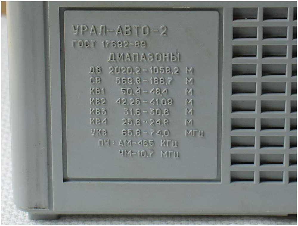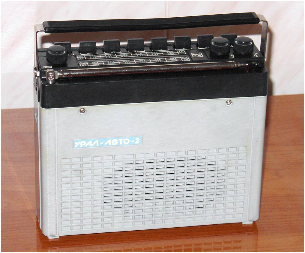Радиоприёмник автомобильный *Урал-авто-2* с 1973 года выпускал Сарапульский завод им. Оджоникидзе. По заказу Ижевского автозавода разработан и производился автомобильно носимый приёмник на 10 микросхемах **Урал-авто-2**, другое более редкое наименование *Урал-авто-202**. Модель является модернизацией приёмника **Урал-авто** и рассчитан на установку в автомобили ИЖ-1500. Однако его можно было использовать в любых легковых или грузовых автомобилях с напряжением бортовой сети 12...15 вольт. Радиоприёмник рассчитан на приём радиовещательных станций в диапазонах: ДВ, СВ, КВ (49, 31, 25 м) и УКВ. В автомобильном режиме приёмник работает в специальной кассете и с помощью разъёмов подключается к антенне, громкоговорителю и бортовой сети. В переносном режиме приём в диапазонах ДВ, СВ ведется на магнитную антенну, а в KB и УКВ на телескопическую. При этом приёмник питается от 6 элементов 343. Чувствительность в автомобильном режиме в диапазонах: ДВ 200 мкВ, СВ 75 мкВ, KB 50 мкВ, УКВ 5 мкВ, в переносном режиме: ДВ 2 мВ/м, СВ 1 мВ/м, KB 200 мкВ/м, УКВ 20 мкВ/м. ПЧ AM тракта - 465 кГц, ЧМ - 10,7 МГц. Избирательность по соседнему каналу в диапазонах АМ при расстройке ±10 кГц - 40 дБ. Усредненная крутизна скатов резонансной характеристики в диапазоне УКВ-ЧМ 0,17 дБ/кГц. Выходная мощность в авторежиме 2/4 Вт, в переносном 0,25/0,5 Вт. Полоса ЗЧ при работе на внутренний громкоговоритель 0,5ГД-30 - 200...4000 Гц в АМ и 200..10000 Гц в ЧМ тракте. При работе на внешний громкоговоритель 4ГД-8Е, полоса ЗЧ 125...7100 Гц и 125...10000 Гц. Приёмник имеет регулировку тембра ВЧ глубиной 10 дБ. Время работы от батарей 343 при средней громкости 50 часов. Габариты переносного приёмника 195х60х190 мм, автомобильного 195х60х145 мм. Масса 1,9 кг. Радиоприёмник **Урал-авто-2** выпускался вплоть до начала 1992 года, претерпев модернизацию внешнего вида.