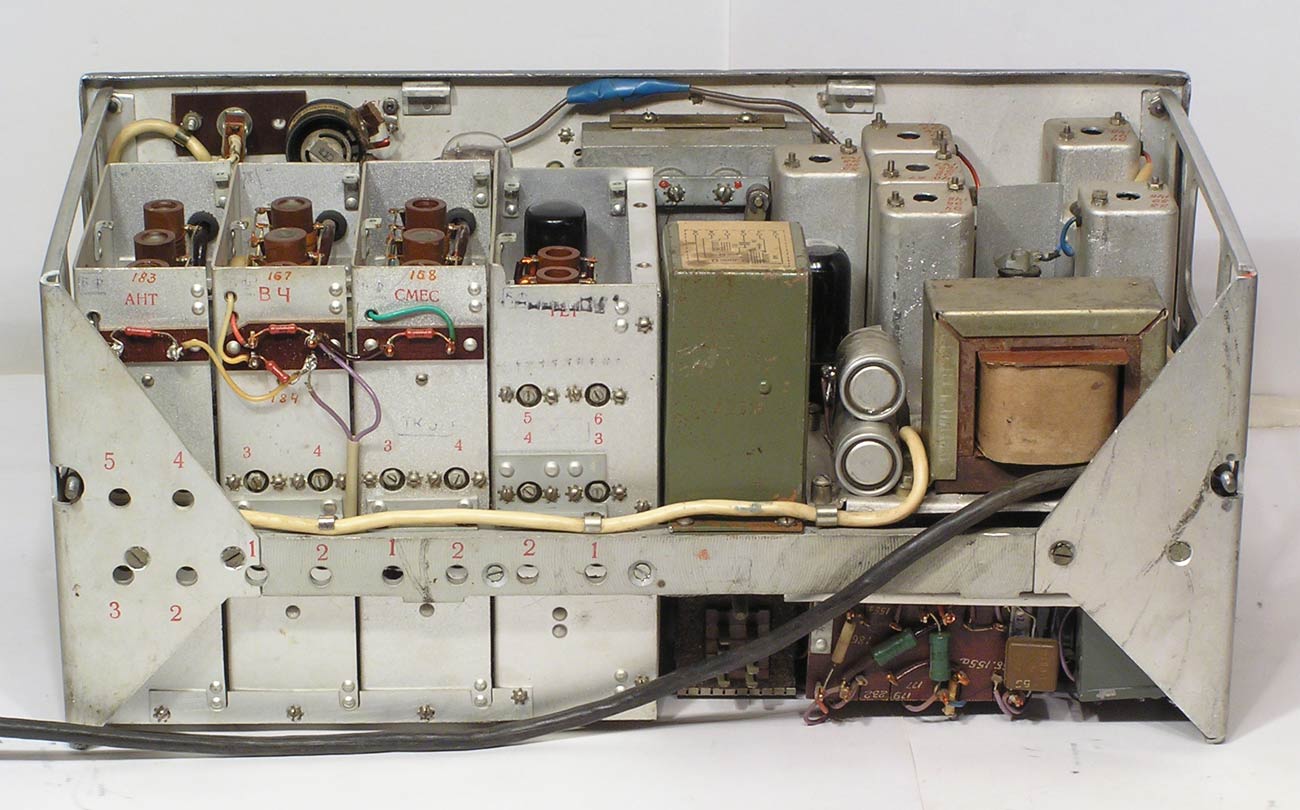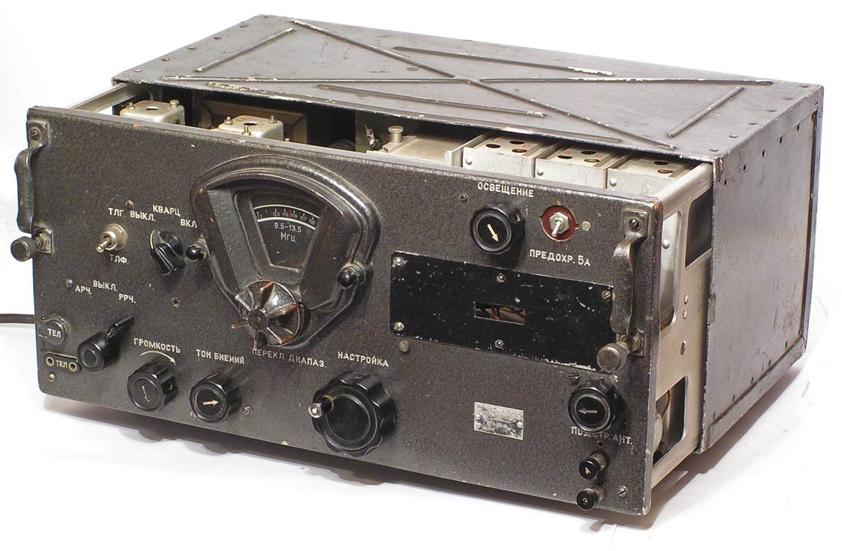 Авиационный радиоприёмник *УС-9* (Соловей) выпускался с 1947 года. Создан на основе американского приёмника *BC-348* и практически является его копией. В приёмнике применено 9 ламп серии: 6К7, 6Ж7, 6Ж8, 6Ф7, 6Б8, 6П6С. Диапазоны 200…500 кГц и 1,5…18 МГц. Чувствительность 3…8 мкВ (телеграф), 5…15 мкВ (АМ). Промежуточная частота 915 кГц. Питание от бортовой сети, либо постоянного тока 27 В, либо переменного 115 В, 400 Гц через встроенный умформер. Потребляемая мощность 35 Вт. Габариты приёмника 245х460х275 мм. Масса 18 кг.