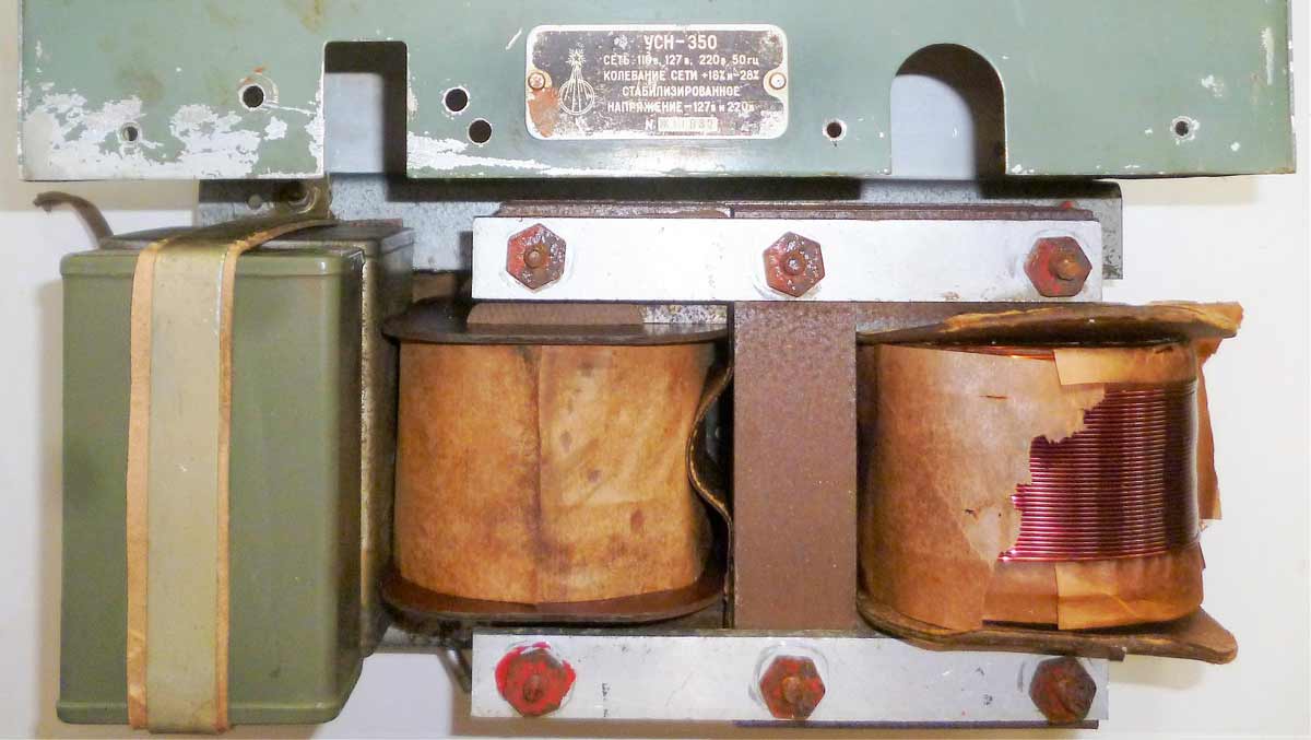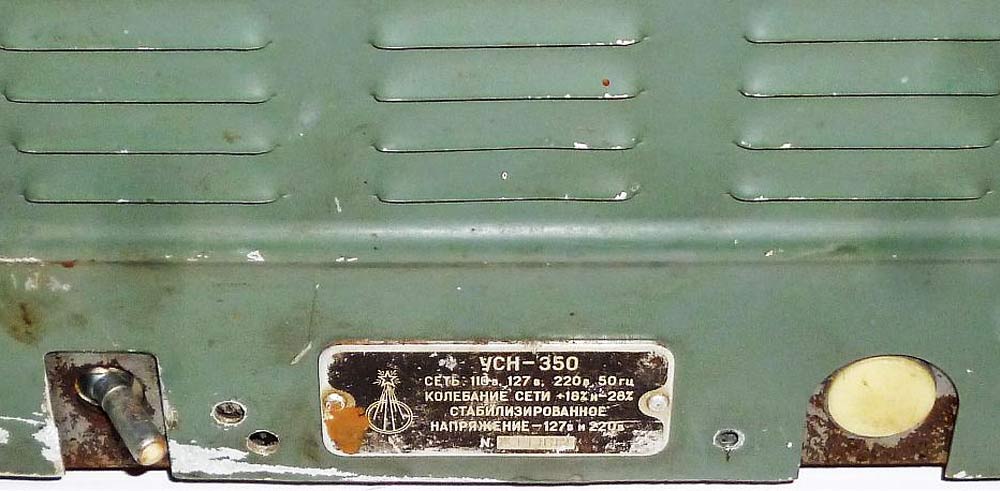 Универсальный стабилизатор напряжения *УСН-350* выпускался с 1954 года. Стабилизатор предназначен для питания стабилизированным наряжением 127 или 220 В различной бытовой аппаратуры с потребляемой мощностью до 350 Вт. Рассчитан на активную и реактивную нагрузку. Габариты 310х140х350 мм. Масса 12 кг.