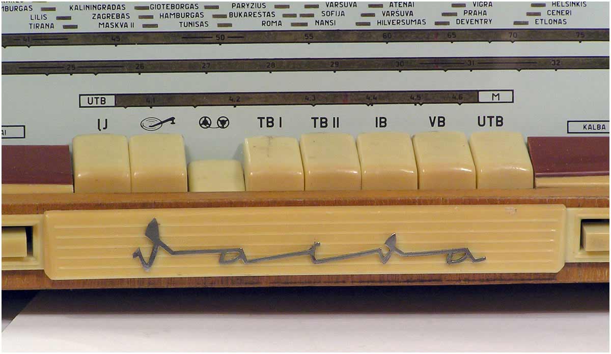 Магнитола *Вайва* с 1960 года выпускалась Каунасским радиозаводом. Магнитола **Вайва** является комбинированным устройством, состоящим из супергетеродинного радиоприёмника 2 класса и магнитофонной панели **Эльфа-17**. Магнитола предназначена для приёма в диапазонах: ДВ, СВ, КВ и УКВ, а также для записи и воспроизведения звука. Магнитола выполнена в деревянном корпусе с поднимающейся крышкой. Номинальная выходная мощность магнитолы 2 Вт. Питание от сети 127 или 220 в. Потребляемая мощность при приёме 80, при работе магнитофона 125 Вт. Габариты модели 622х435х375 мм, вес 26 кг. Цена с 1961 г. 189 руб. 75 коп. Первые магнитолы имели индикатор настройки 6Е5С, впоследствии заменённую на 6Е1П.