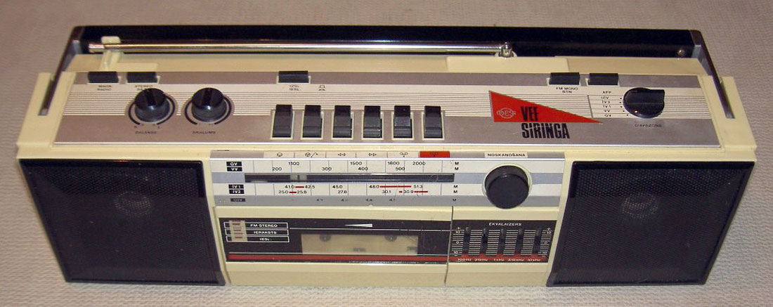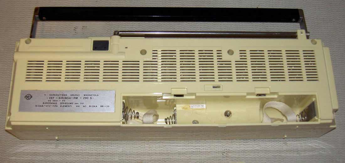 Магнитола *VEF Siringa РМ-290С* 1991 года выпускалась Рижским РПО *ВЭФ*. Состоит из приёмника с ЧМ/АМ трактами 2-й группы сложности и стереомагнитофона третьей группы сложности. Предназначена для радиоприёма, записи и воспроизведения фонограмм с применением кассет МК-60, (90). В МЛ имеются АПЧ, БШН в диапазоне ЧМ, расширение стереобазы, АРУЗ, переключение частоты генератора стирания, автостоп по окончании ленты. Питание от сети через внешний БП или от 6 элементов 373. Органы управления расположены сверху, это переключатели магнитофон/радио, расширение стереобазы, АПЧ, моно-стерео, переключатель диапазонов, регуляторы баланса и громкости, управление магнитофоном. На передней панели находится ручка настройки на частоту, регуляторы тембра и индикаторы включения режима записи и стереоприёма. УНЧ имеют пятиполосный эквалайзер с частотами: 100, 315 Гц, 1, 315 и 10 кГц. Имеются гнёзда входа/выхода сигнала, гнёзда для головных телефонов. Диапазоны: ДВ 148...283 кГц, СВ 526...1607 кГц, УКВ 65.8...74.0 МГц, КВ-1 5.95...7.3 МГц, КВ-2 9.5...12.1 МГц. Скорость протяжки магнитной ленты 4.76 см/с, коэффициент детонации ±0.35%. Отношение сигнал/шум -44 дБ. Диапазон звуковых частот тракта АМ - 150...4000 Гц, тракта ЧМ 150...10000 Гц, магнитофона 63...10000 Гц. Номинальная выходная мощность 2х2 Вт, максимальная 2х3 Вт. Габариты магнитолы 450х140х143 мм, её масса 3.2 кг.