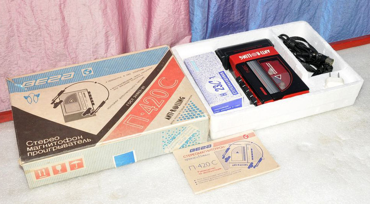 Кассетный стереофонический магнитофон-проигрыватель *Вега П-420С* с 1992 года выпускало Бердское ПО *Вега*. МП предназначен для воспроизведения фонограмм с кассет МК-60 или МК-90 на малогабаритные головные телефоны. Питание от двух элементов А-316. В МП имеется гнездо для внешнего питания. По окончании ленты и попытке зажатия срабатывает автостоп с функцией **antirolling**, выключающий клавишу **Пуск**. Перемотка производится в обе стороны. Скорость ленты 4,76 см/сек. Диапазон воспроизводимых частот 63...10000 Гц. Номинальная выходная мощность 2х50 мВт. Габариты 130х90х38 мм. Вес 300 гр.