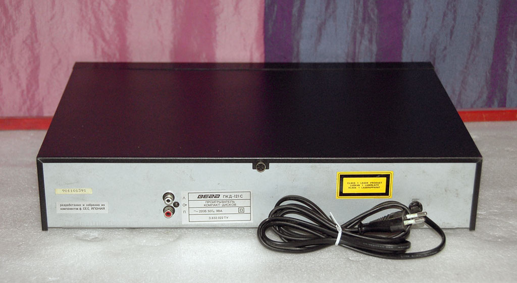 Лазерный проигрыватель компакт-дисков "Вега ПКД-121С" с 1989 года опытно выпускал Бердский радиозавод. В 1989 году ПО "Вега" закупило у японской фирмы "CEC" (Chuo Denki Co) комплекты для "отвёрточной" сборки ПКД. Проигрыватель с таким же дизайном и похожей схемой (тот же процессор LC6554, тот же ЦАП LC7881 производства "Sanyo") закупался фирмой "Marantz" (США) и поступал в продажу под названием "Marantz Digisonic CD2474". В СССР аппарату присвоили название "Вега ПКД-121". Всего было собрано около трёх тысяч этих ПКД. Цена аппарата составляла 1895 рублей. Три последних фото - прототип ПКД.