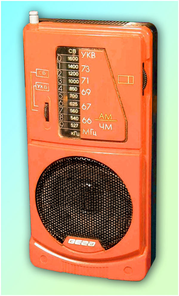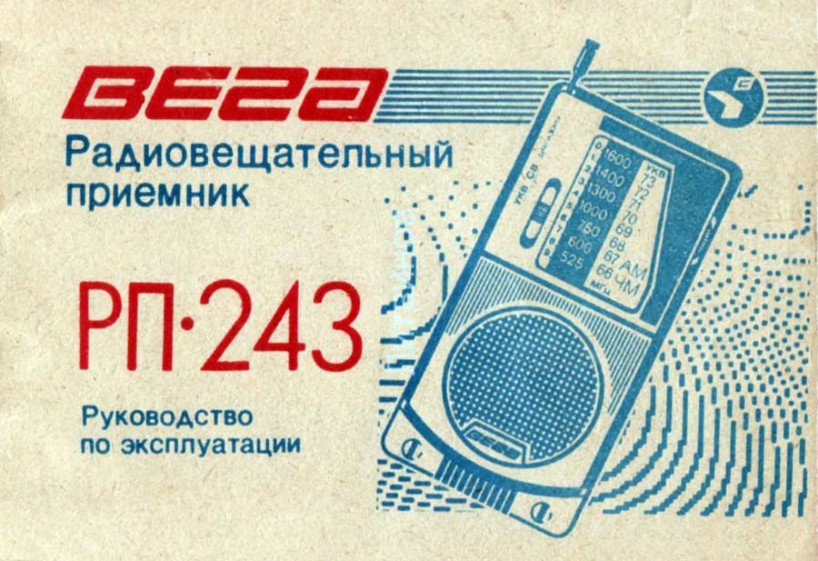 Портативный АМ/ЧМ радиоприёмник *Вега РП-243* с начала 1989 года выпускал Бердский радиозавод. Радиоприёмник рассчитан для приёма программ радиовещательных станций в диапазонах средних (СВ) и ультракоротких (УКВ) волн. Радиоприёмник собран на двух микросхемах и трёх транзисторах. Чувствительность в диапазоне СВ - 1,3 мВ/м, УКВ - 100 мкВ. Селективность 30 дБ. Диапазон эффективно воспроизводимых звуковых частот при приёме в ЧМ - 250...7000 Гц, АМ - 300...40000 Гц. Номинальная выходная мощность - 100 мВт. Питание от 4-х элементов А-316. Масса радиоприёмника - 350 гр.